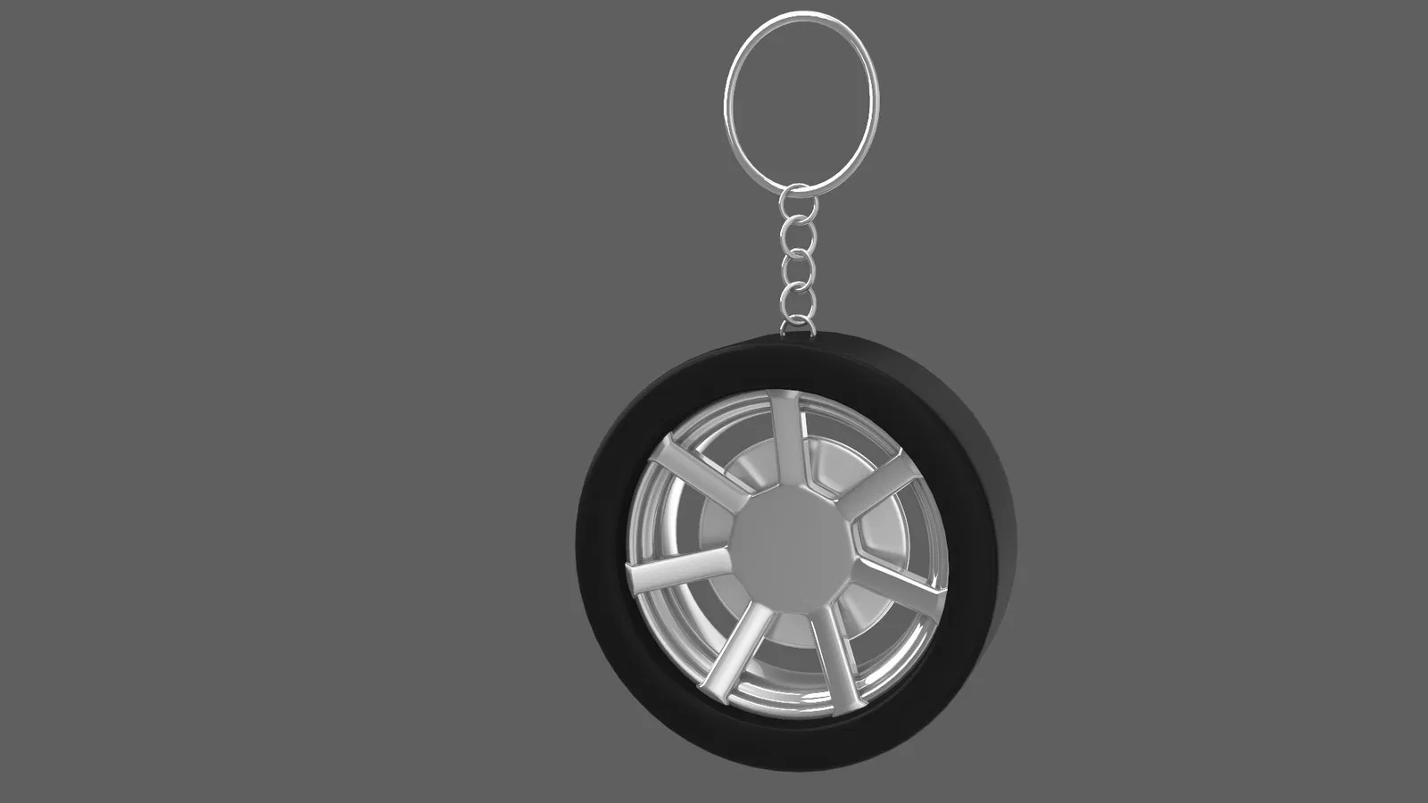 Mẫu 3D Simple Chrome Wheel Keychain (móc khóa bánh xe chrome đơn giản) làm bằng 3ds Max 2024, render bằng V-Ray. Có kèm file Blender và thiết kế sẵn sàng để 3D print.