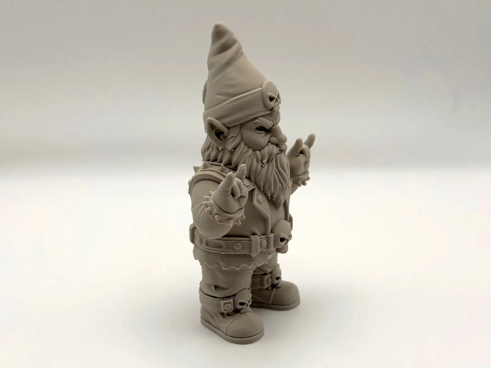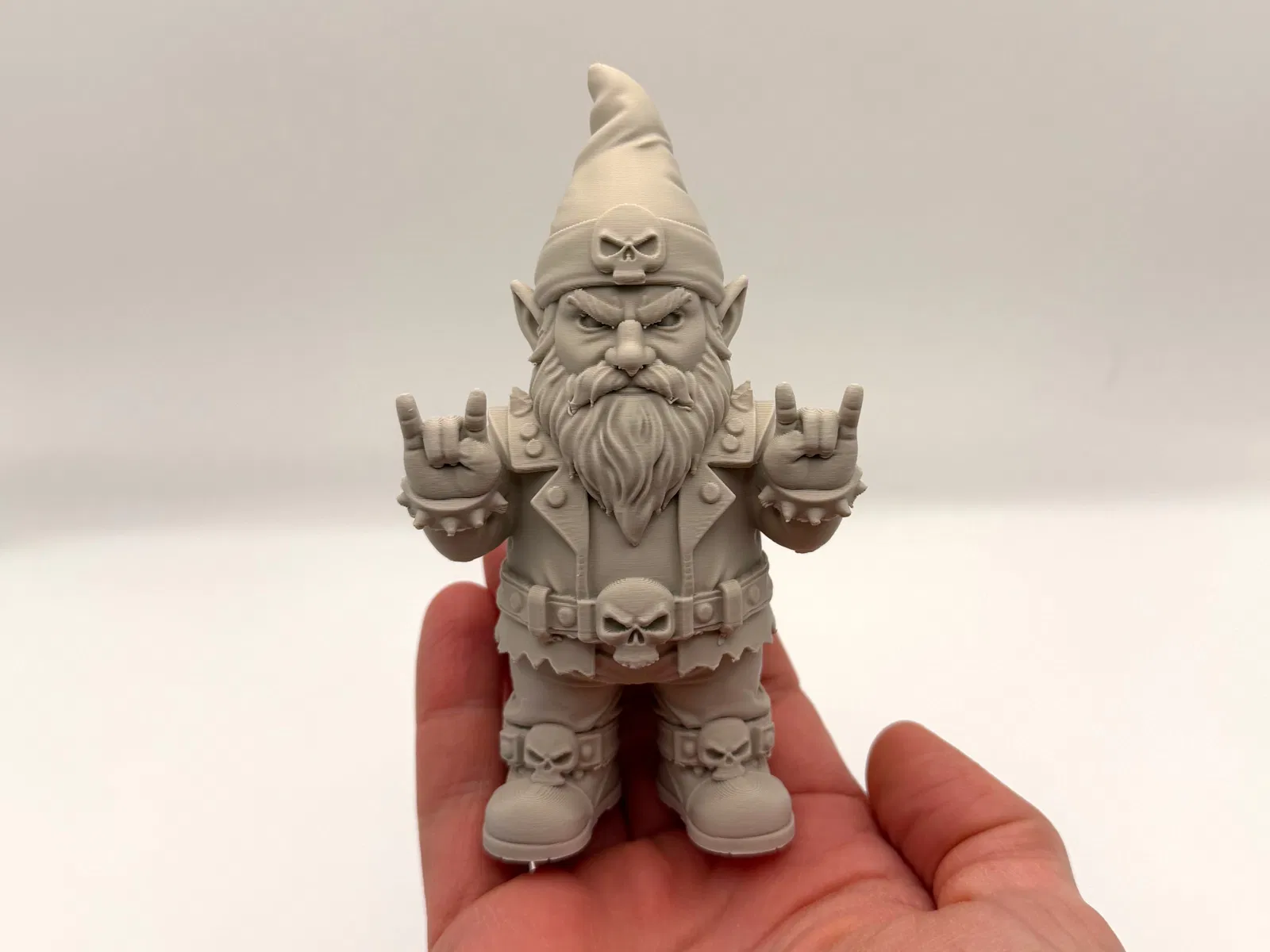 Skull Rock Gnome – chú gnome phong cách metal, kích thước vừa cho sân vườn/hiên nhà. Khi in cần khá nhiều supports; dùng organic supports sẽ dễ bóc sạch, và chỉnh Z-top height để tháo supports nhẹ nhàng hơn.