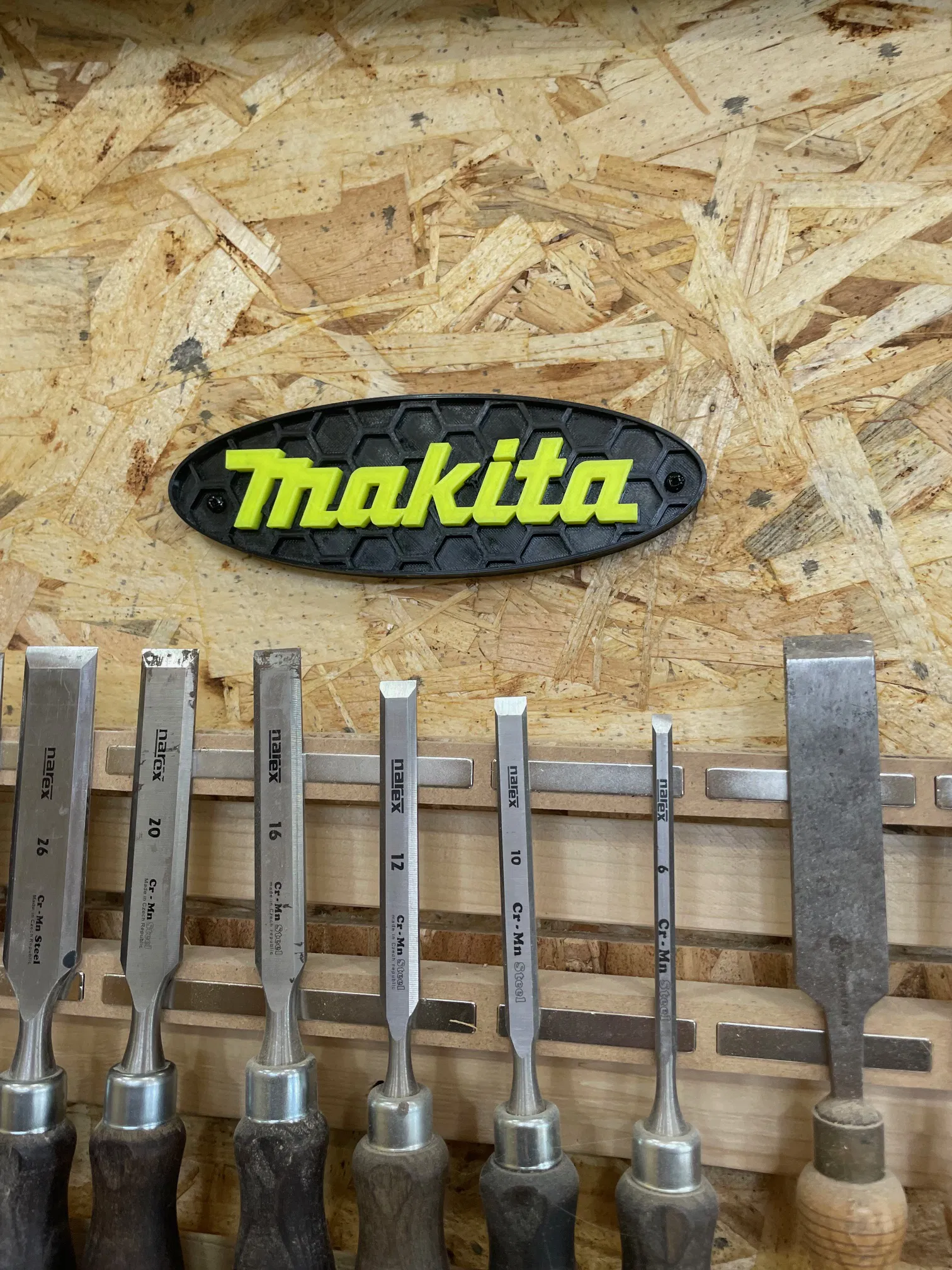 Mẫu bảng logo Makita “No AMS” để trang trí góc chơi đồ, phòng làm việc hoặc tiệm. In ra để thể hiện bạn là fan Makita và làm không gian mancave/shop nhìn chất hơn.