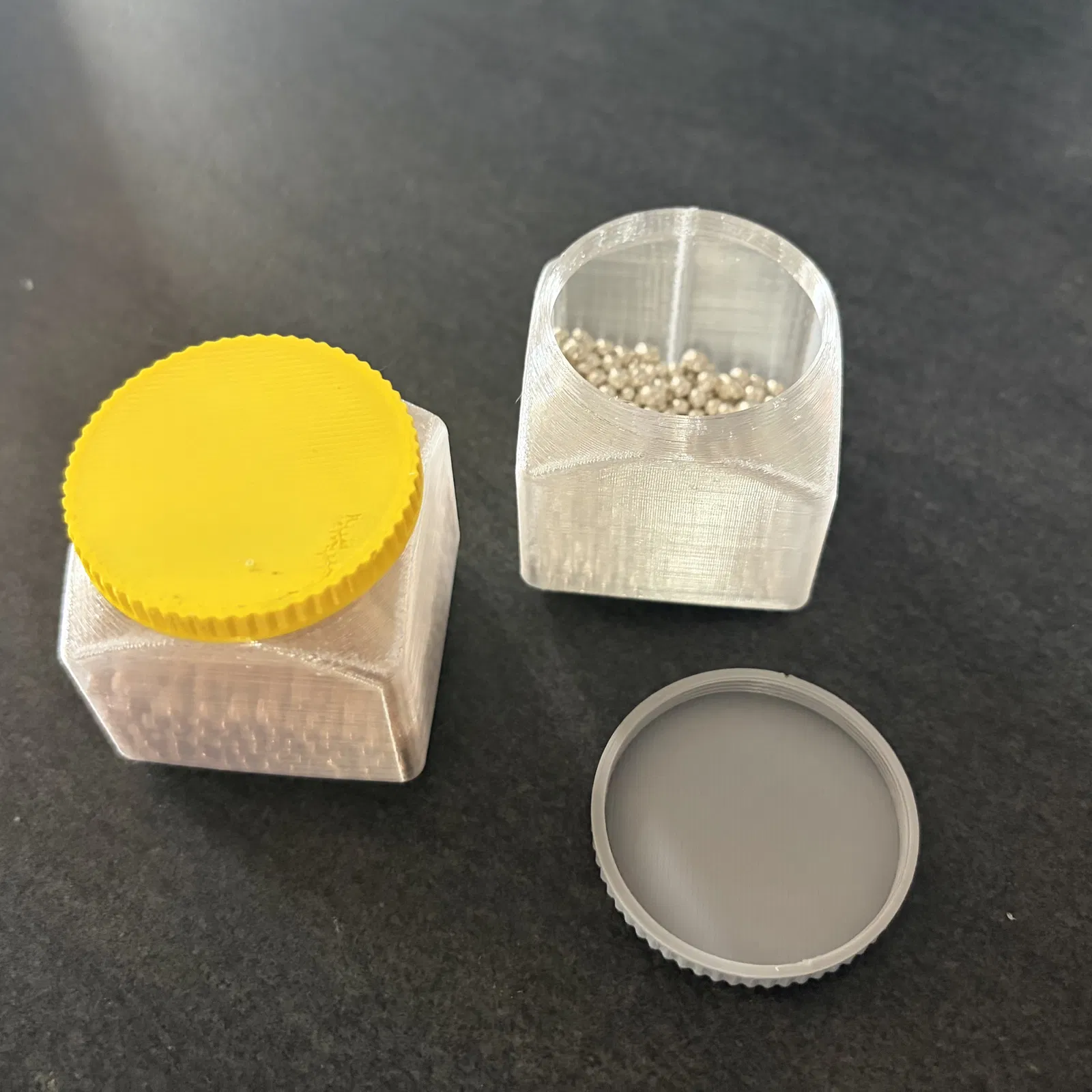 Các khay Gridfinity rất tiện nếu để đứng yên, nhưng lỡ bị lật ngửa là dễ đổ tung. Cái hũ này thêm nắp vặn (screw-on) để giữ mấy món nhỏ bên trong cho chắc, không sợ rơi vãi.