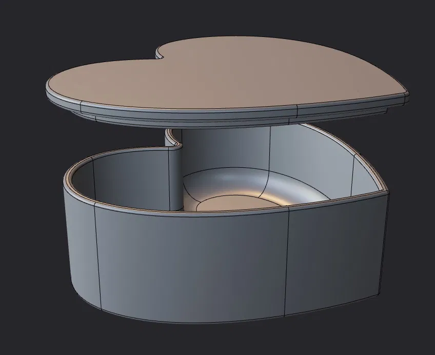 Mẫu hộp hình trái tim có nắp đậy, dễ thương và gọn gàng, thích hợp để đựng quà, đồ nhỏ hoặc làm hộp tặng dịp Valentine. Thiết kế đơn giản, tiện cho việc in 3D và sử dụng hằng ngày.