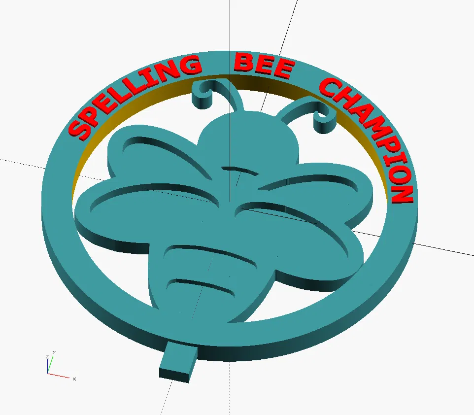 Mẫu cúp Spelling Bee dễ thương in 3D, thiết kế bằng OpenSCAD để tuỳ biến chữ và chi tiết. Dùng BOSL2 và font linja pona để tạo “runes” Toki Pona trên đế. In medallion và base riêng để đổi màu.