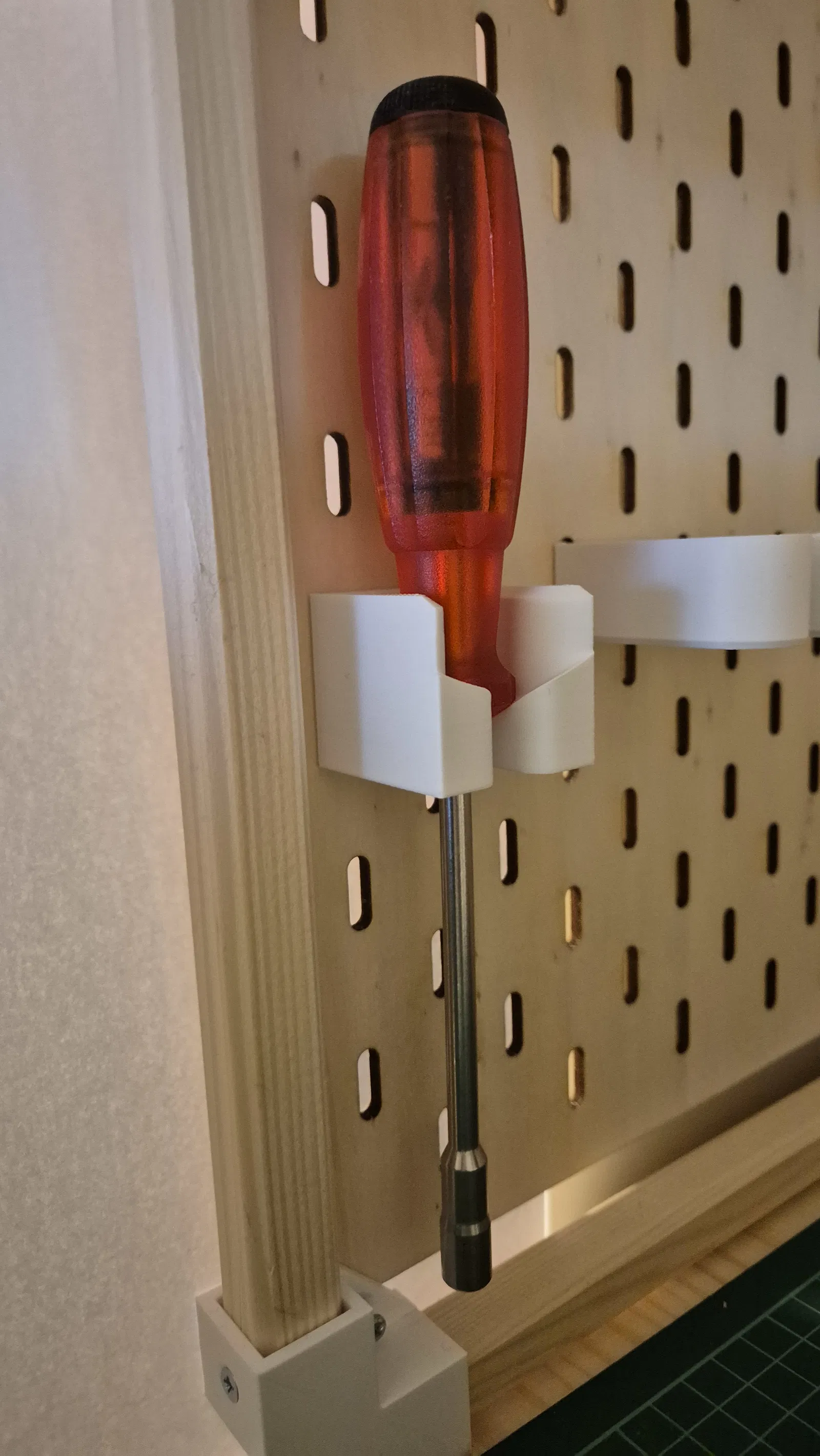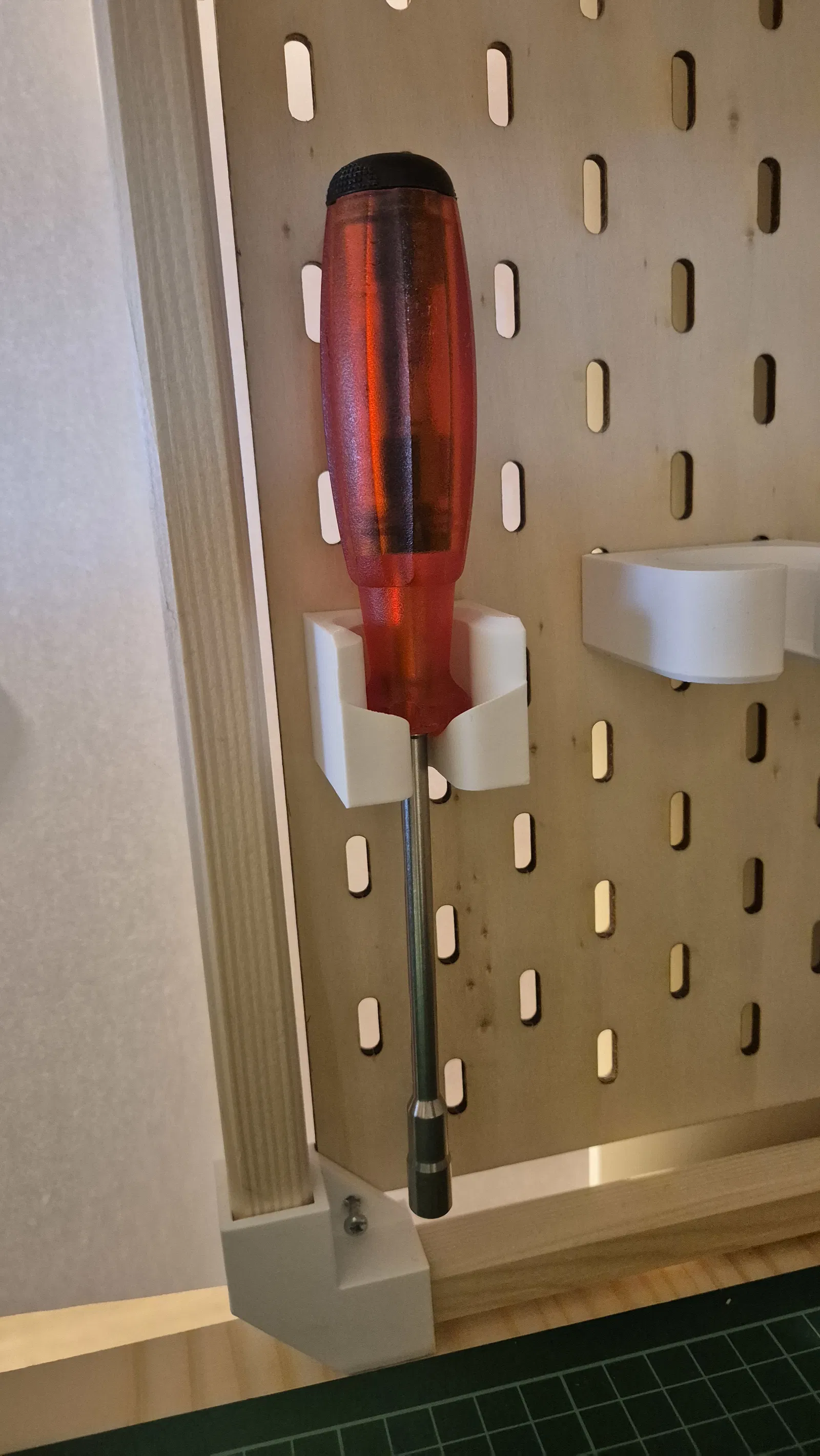 Giá treo tua vít tối giản cho IKEA SKÅDIS, thiết kế hơi nghiêng giúp bám chắc, ổn định và dễ thao tác. Có 2 bản cho độ dày bảng 4 mm và 5 mm. Tối ưu cho tua vít Swiss Tools.