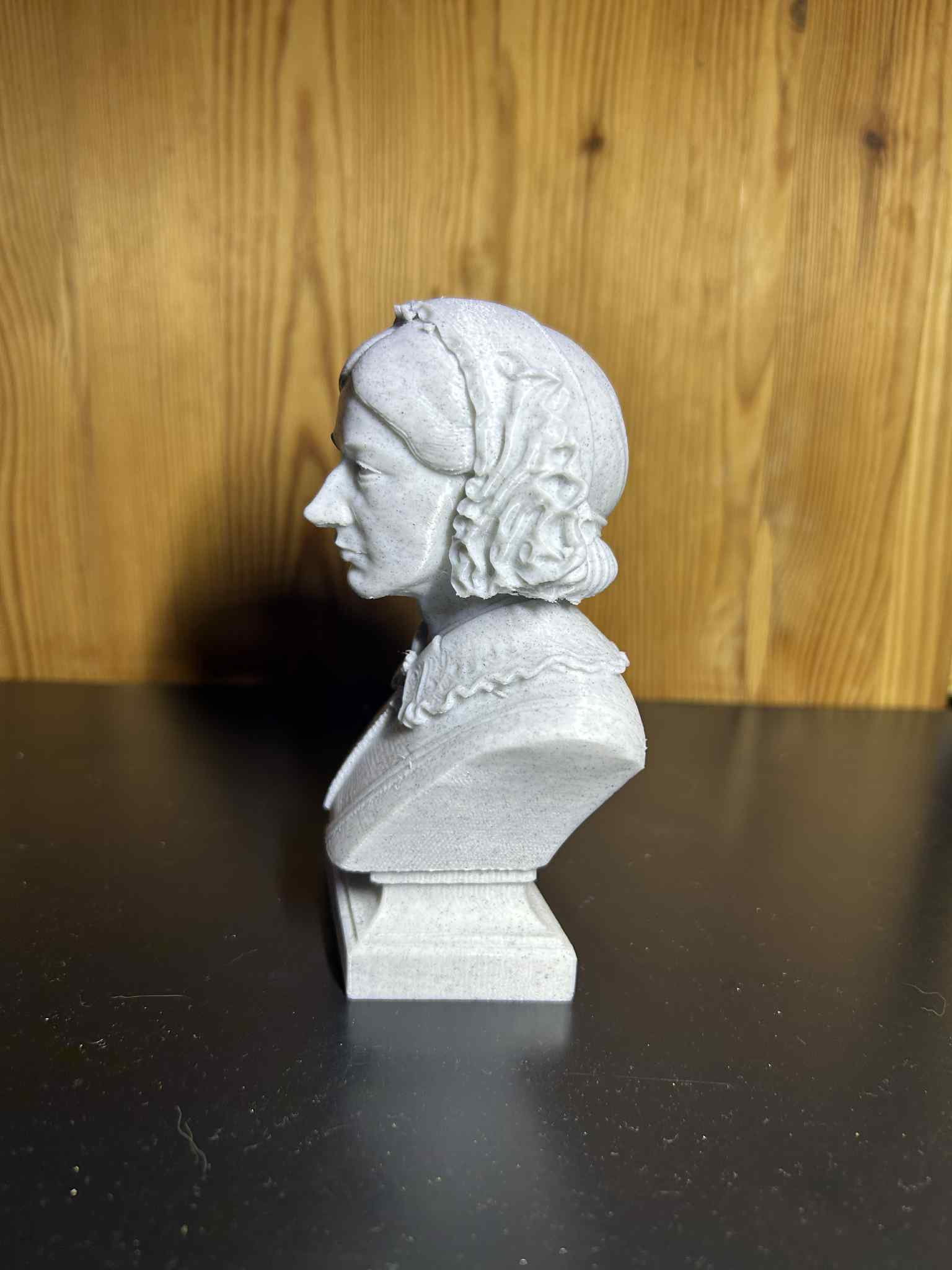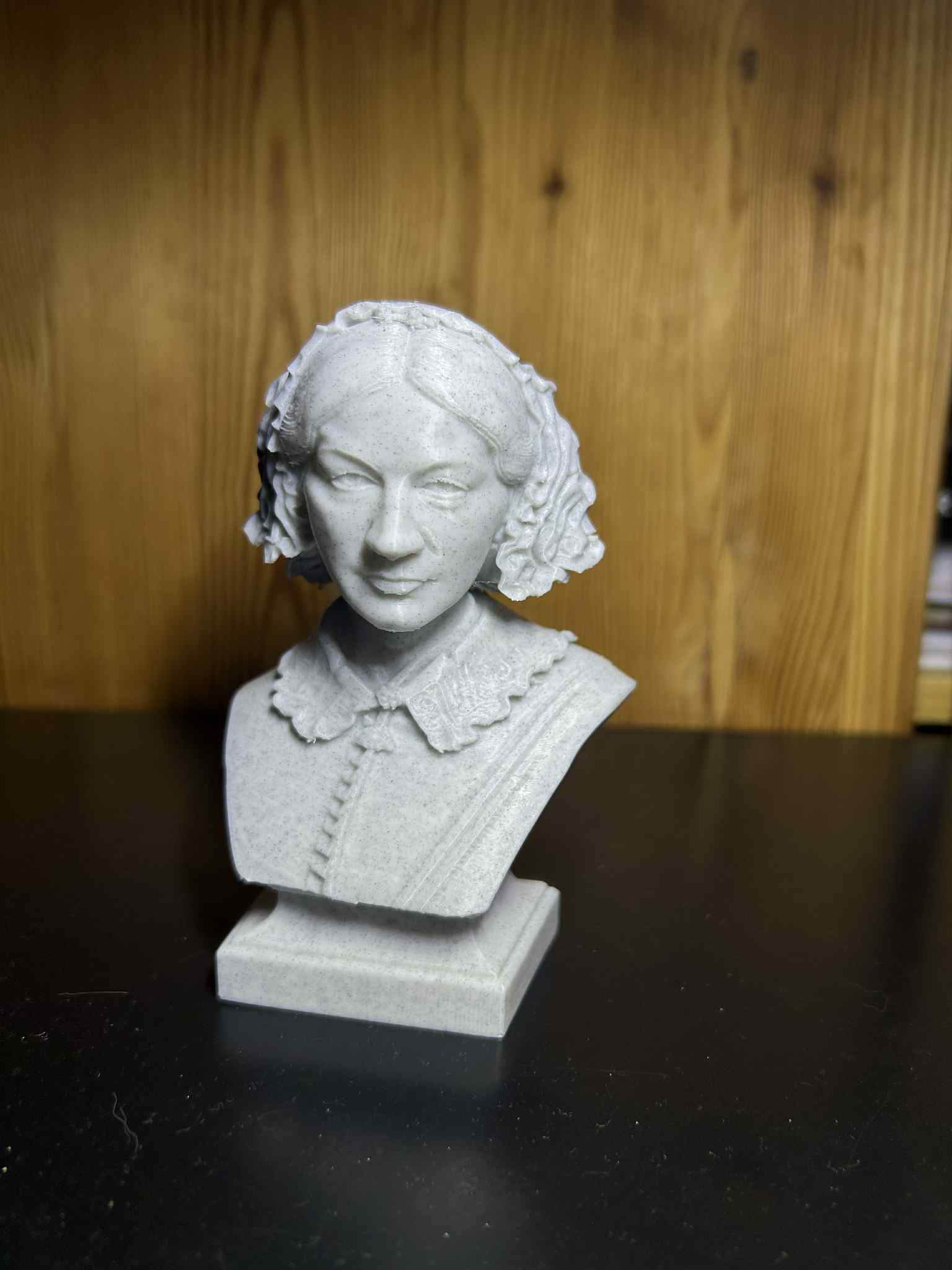 Kiểu tóc và trang phục, bám sát bức ảnh tham chiếu, được đơn giản hóa có chủ ý để tăng độ rõ hình và sức nặng điêu khắc. Phần bệ đỡ gọn gàng, cân đối, đúng tinh thần tượng bán thân cổ điển, giúp gương mặt trở thành điểm nhấn mà không bị rối mắt. Tượng bán thân này là lời tri ân dành cho một người phụ nữ có đóng góp đã thay đổi sâu sắc y học, vệ sinh bệnh viện, và vai trò của điều dưỡng trong thế giới hiện đại.