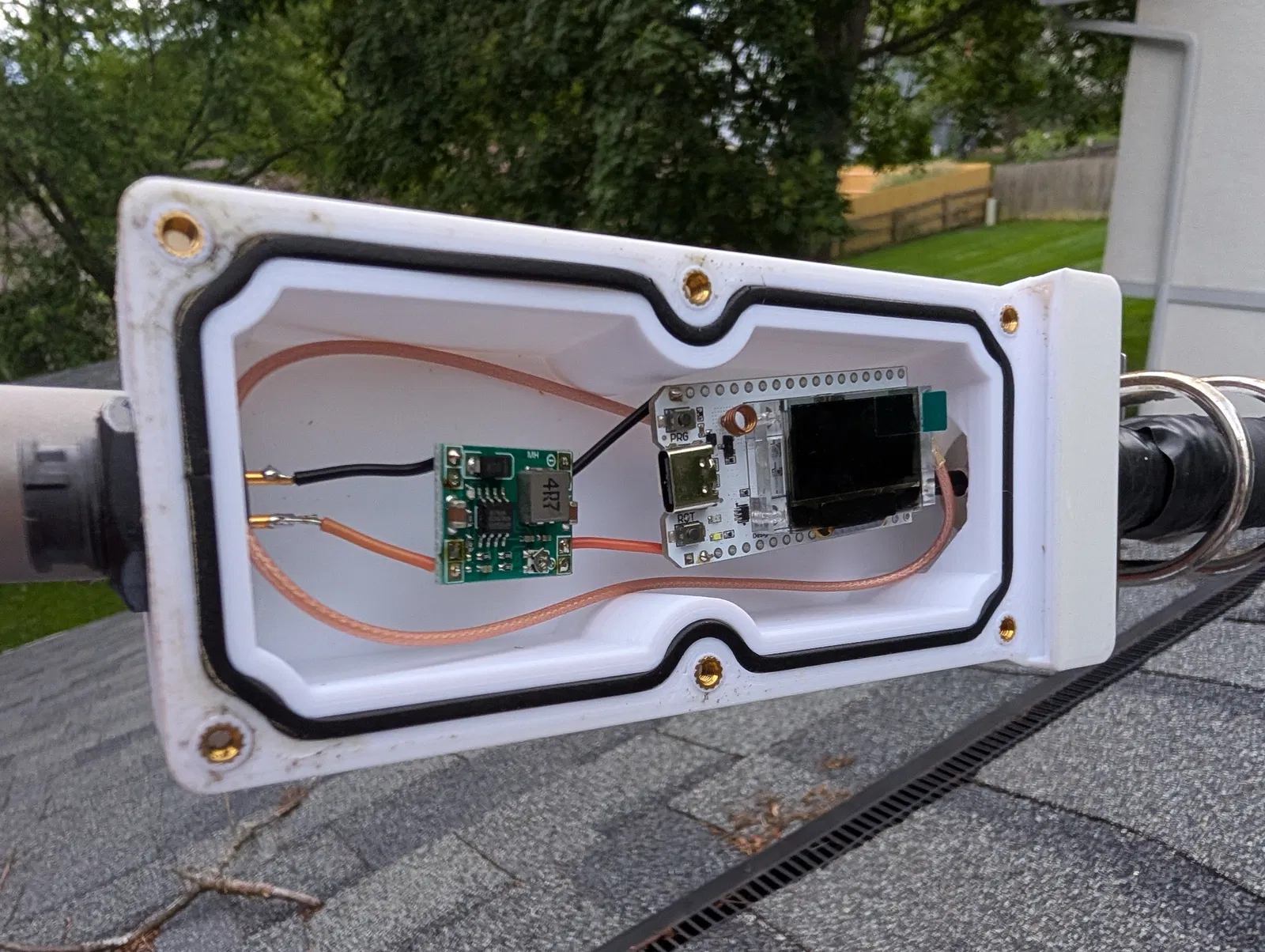 Mình xịt phủ mặt ngoài bằng polyurethane trong suốt để đảm bảo độ kín nước. Thiết kế này đã chạy hơn hai mùa đông rồi mà không gặp vấn đề nước lọt hay bị nắng làm xuống cấp.