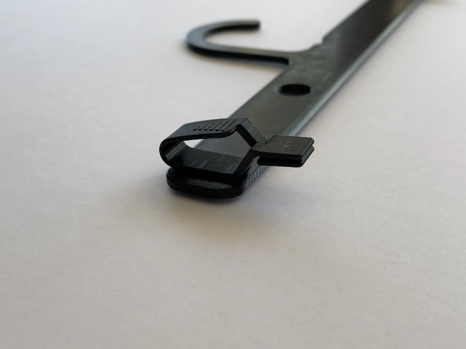 Có vẻ nên in móc treo bằng PETG, ABS, ASA, hoặc vật liệu khác ít bị creep hơn (PLA chắc là lựa chọn không ổn).