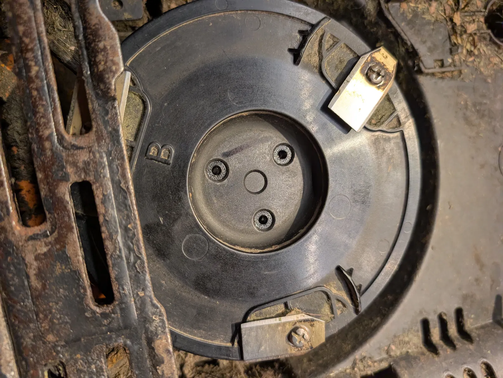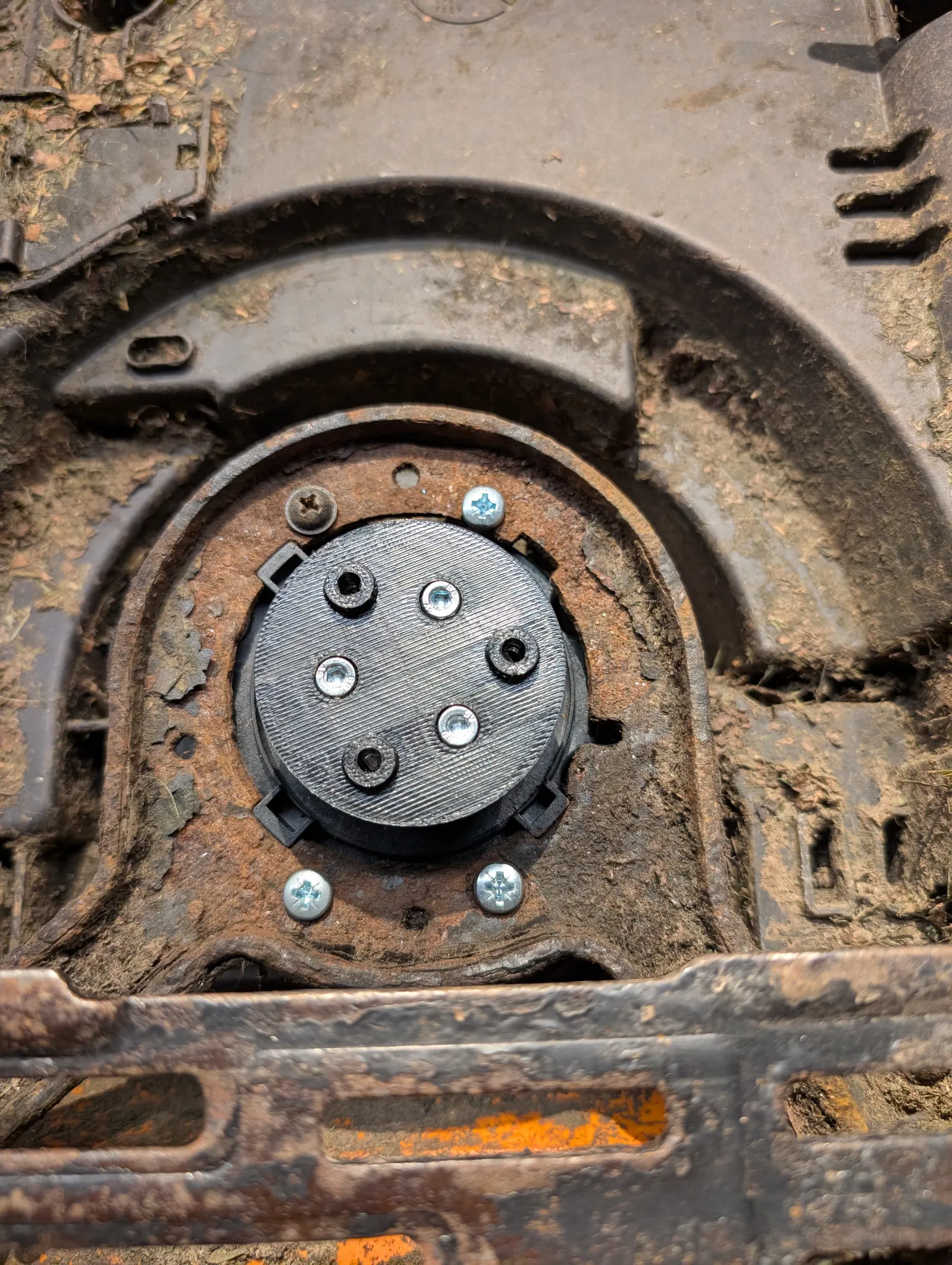 Sau khi thay motor cắt của robot cắt cỏ Worx Landroid WR143E, cái plateau (bệ cắt) nguyên bản không còn sử dụng được.