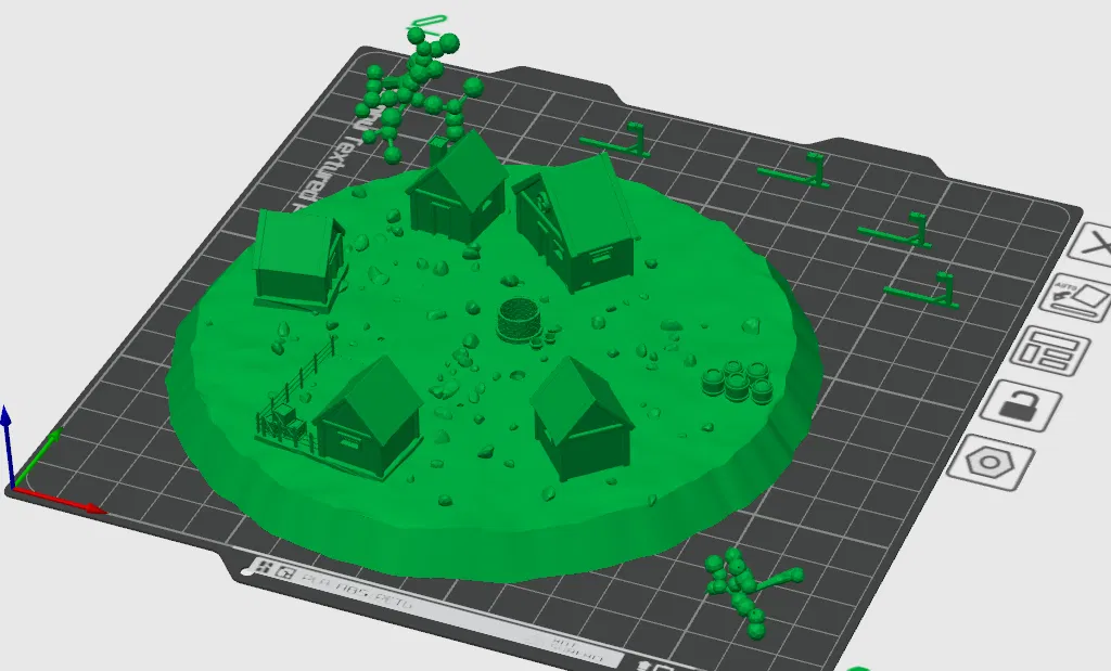 Mô hình “mini village” là một ngôi làng thời Trung Cổ nhỏ xinh và dễ thương, phù hợp để trang trí bàn làm việc, làm diorama hoặc trưng bày. In 3D nhanh gọn, nhìn lên là thấy vibe cổ tích liền.