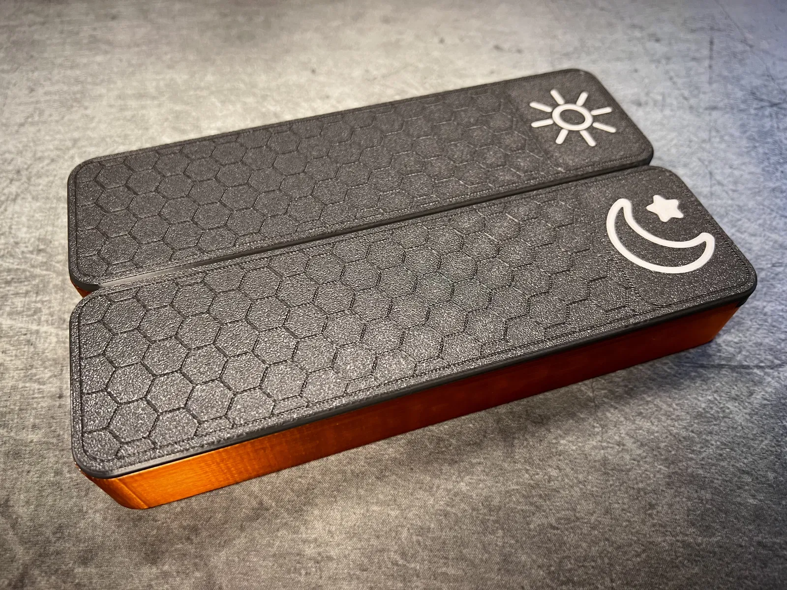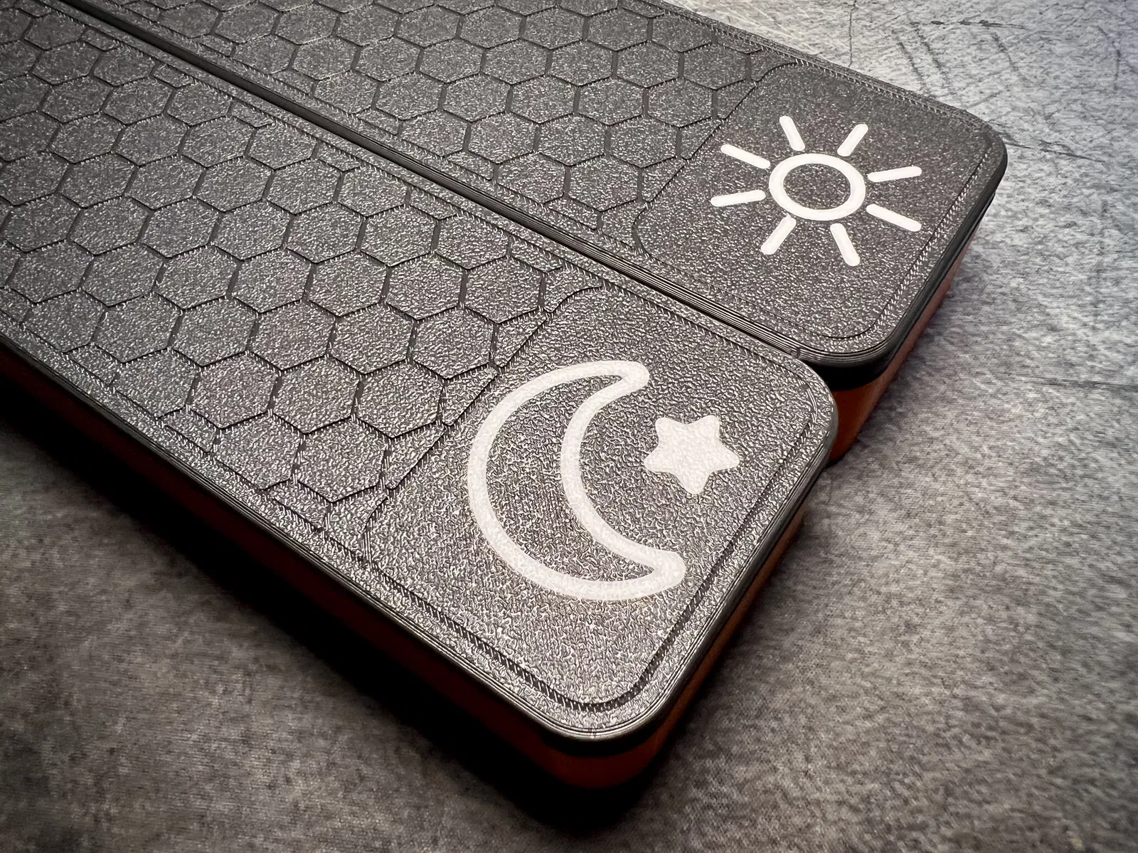 Mình thiết kế bằng Onshape “ruột” của mình. Phần nhãn ngày và các pictogram là các object tách riêng, nên đổi màu hoặc đổi vật liệu cực dễ. Mình đã in và test rồi. 🙂
