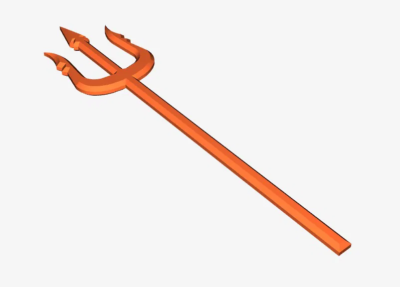 Một mô hình Trident đơn giản, dài 102mm. Khi mô hình được vát hơn ở cả hai bên, nên in bằng vành được khuyến nghị cho