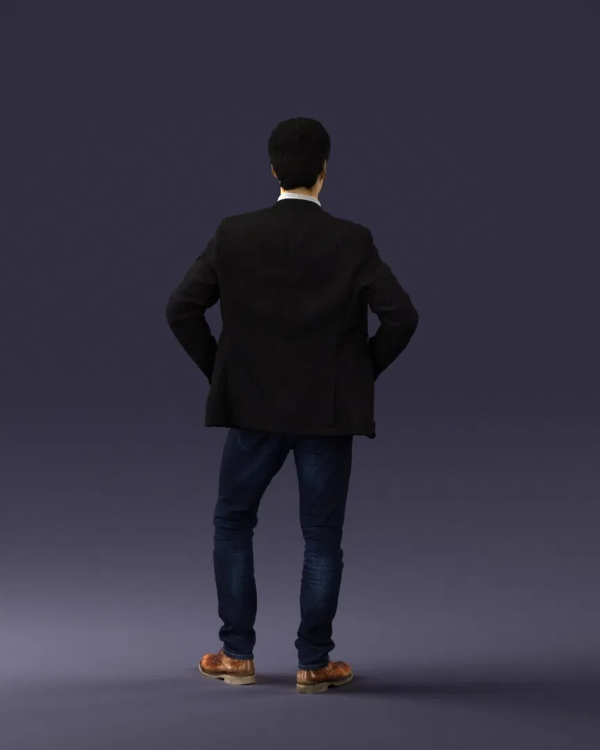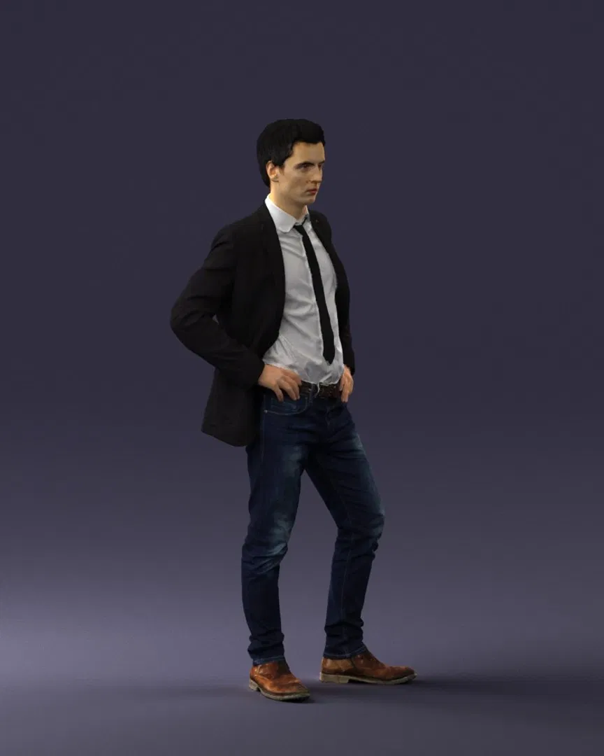 Model 3D scan photorealistic Fashion Man Posed 0318 cho architectural visualization (góc cận & tầm trung). Tỉ lệ thực (cm), UV map sạch, chi tiết cao, texture 4K. Có file .obj, kèm BMP/JPG.