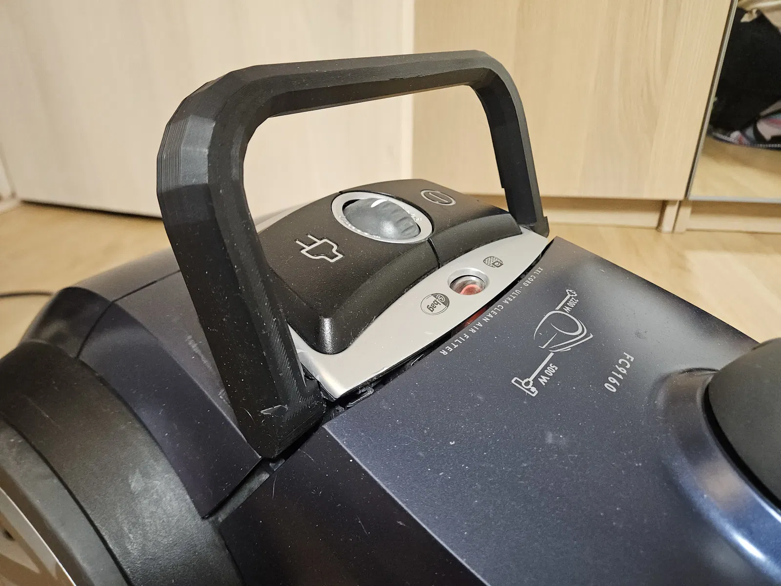 Tay cầm thay thế in 3D cho máy hút bụi Philips dùng túi S-bag. Thiết kế drop-in, lắp click-fit như tay cầm zin, không cần dụng cụ hay chỉnh sửa máy. In một chi tiết, không supports; khuyến nghị ASA hoặc PETG.