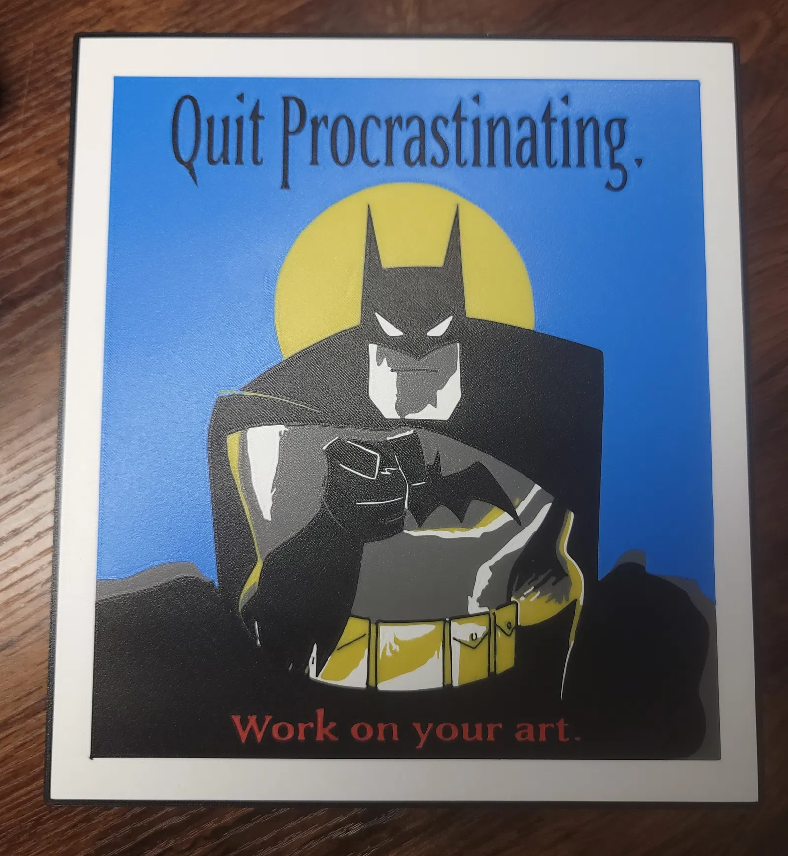 Light box Batman truyền động lực với silhouette Dark Knight trên nền trăng sáng, nhắc bạn thôi trì hoãn và bắt tay làm liền. Thiết kế multi-layer tối ưu cho 3D printing, đẹp cả khi bật/tắt đèn, hợp studio, bàn làm việc hoặc làm quà.