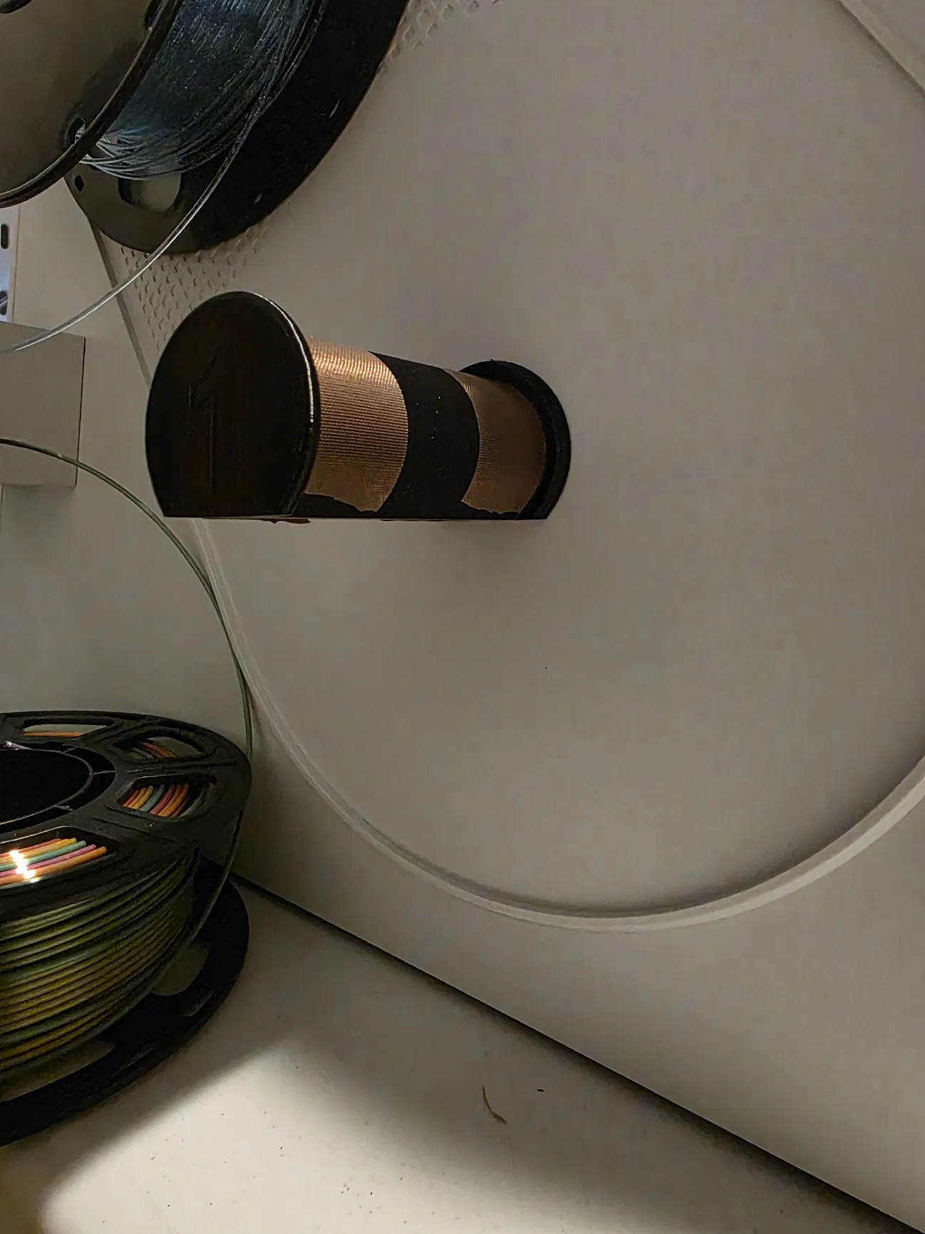 Bản chỉnh sửa giá đỡ cuộn U1 từ thiết kế gốc: nâng latch để có điểm đỡ phía dưới từ panel, đồng thời làm mỏng tay latch để uốn dễ hơn, giảm nguy cơ gãy. Có thể dán thêm băng keo teflon để spool quay mượt hơn.