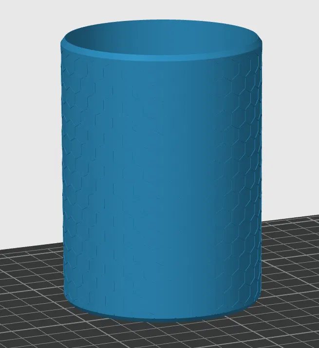 Thiết kế trên Tinkercad.. Ly đa năng cơ bản với bề mặt texture tổ ong (honeycomb). Sau khi in xong có thể cần chà nhám nhẹ quanh miệng ly. In không cần support.