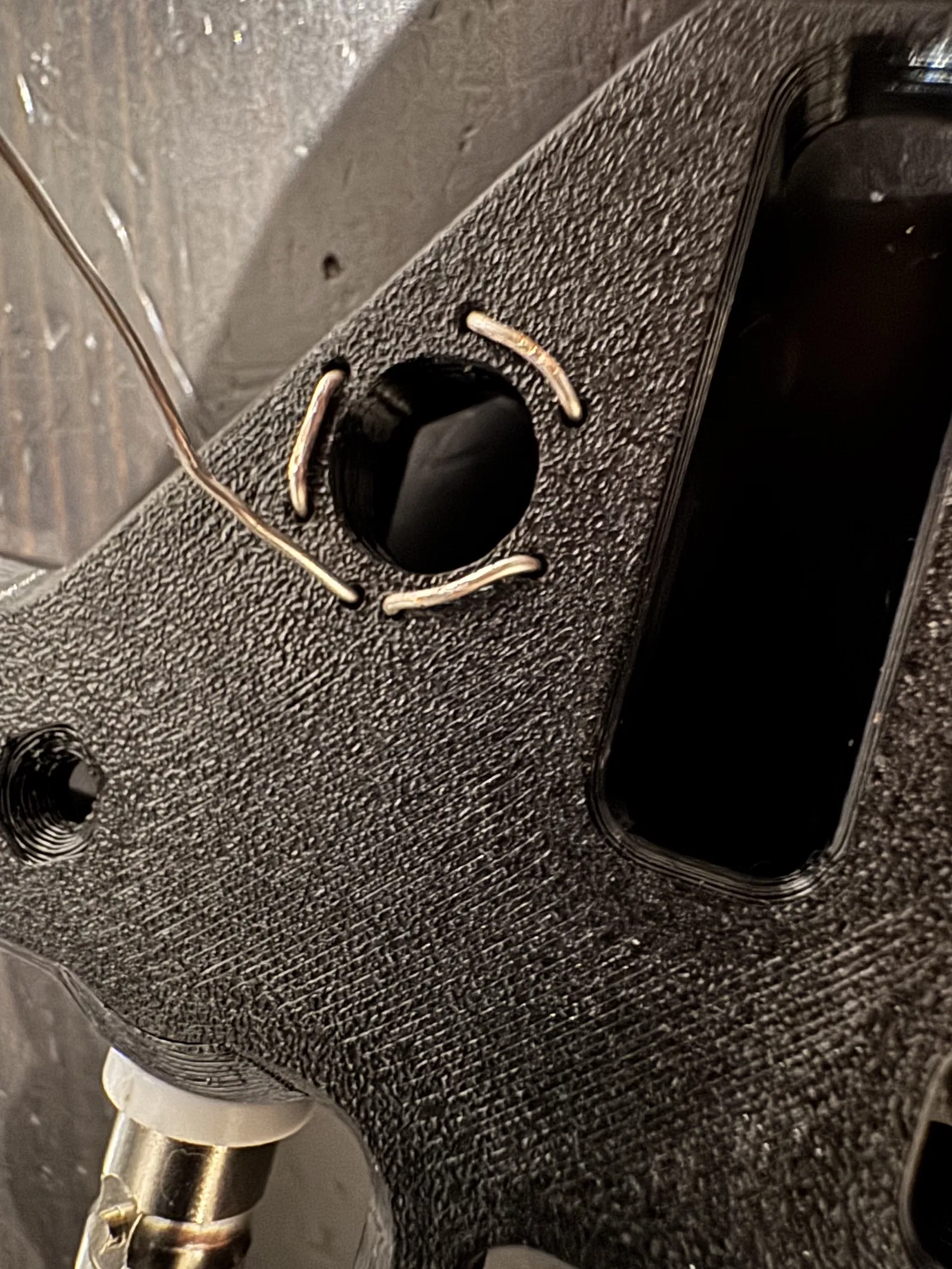 - Từ trong khoang, đặt 1 cos M4 lên lỗ và luồn dây ngắn qua để hàn.