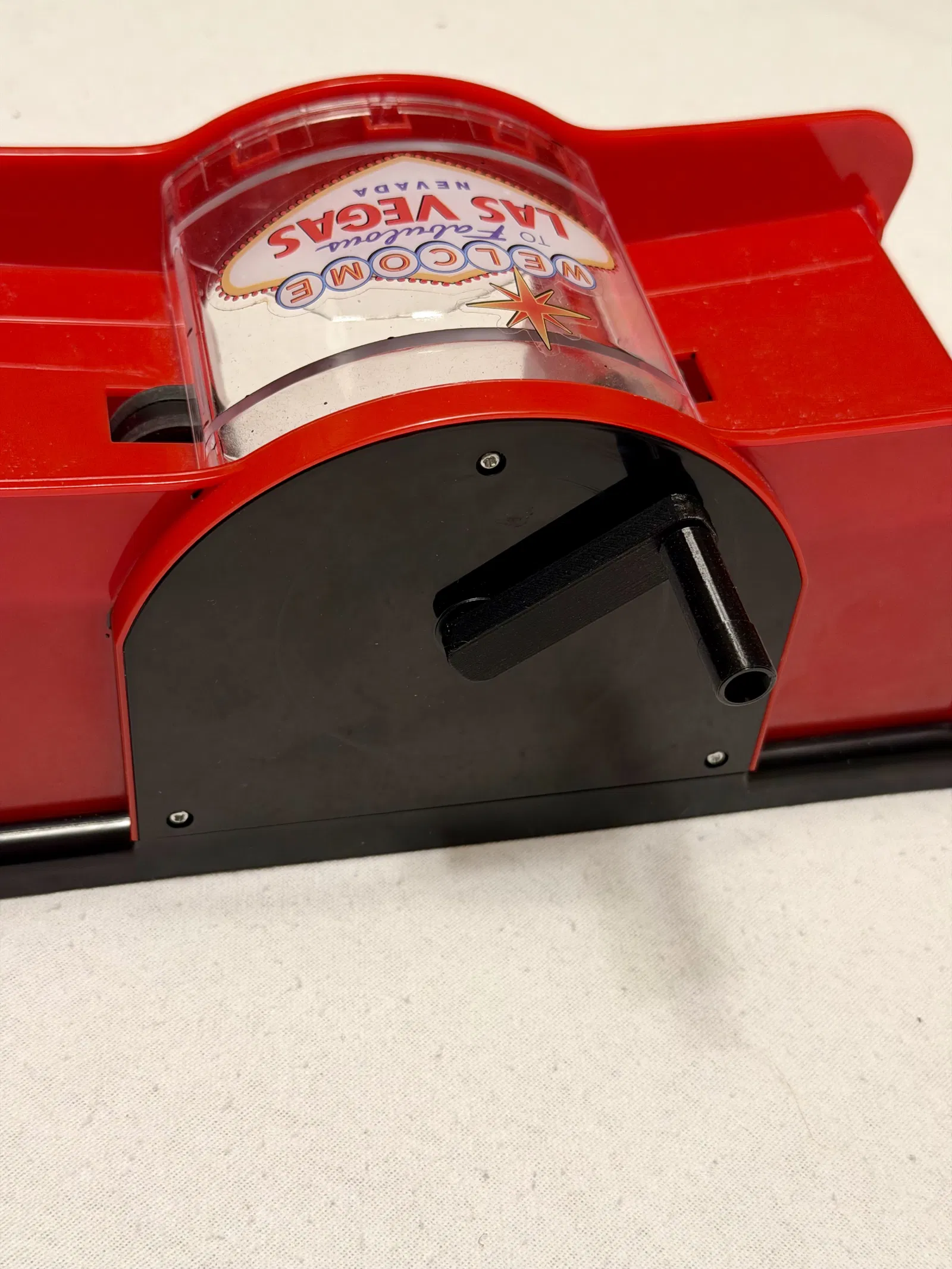 Ngoài ra mình thêm một tay cầm dài hơn (mẫu gốc không có) vẫn lắp vừa vào ngàm tay cầm nguyên bản, nhưng được kéo dài ra và có thêm một cái nub nhỏ ở đầu để dễ nắm hơn và xào mượt hơn. Ngoài thị trường có nhiều loại máy xào bài nhựa quay tay, nhưng nếu cái của bạn nhìn giống hình minh hoạ thì đây có vẻ là một kiểu khá phổ biến và bộ crank này sẽ vừa!