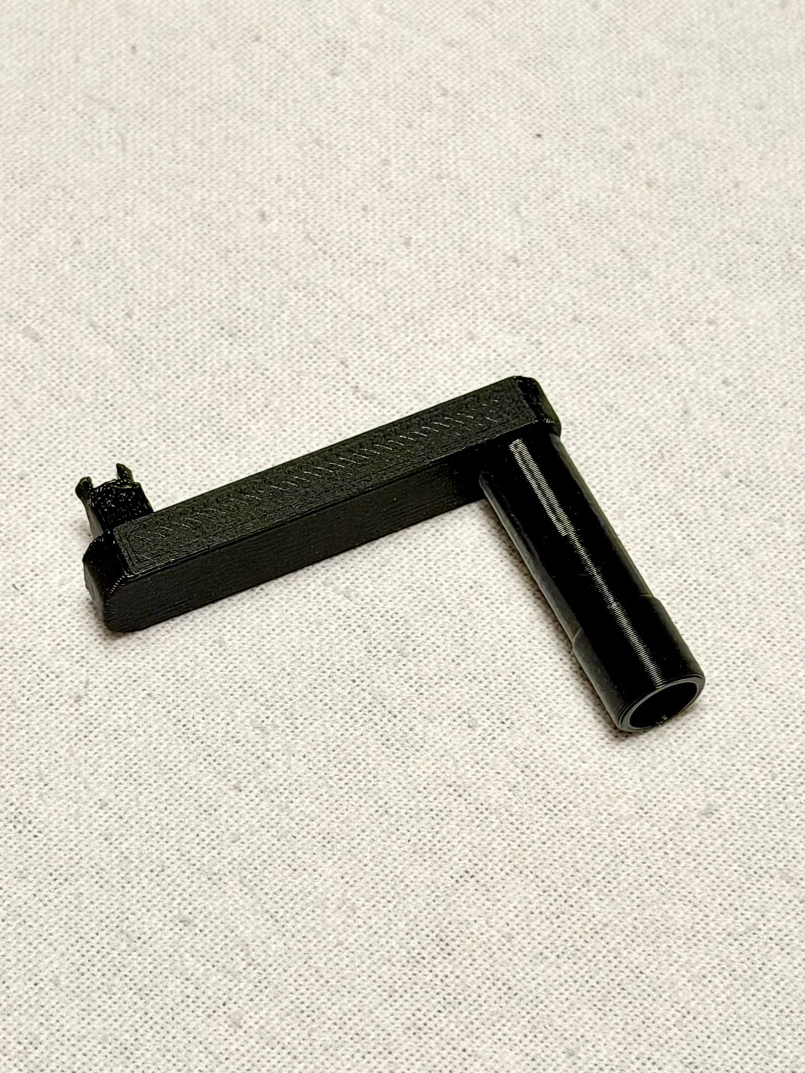 Mình khuyên in PETG cho bền hơn (mình dùng Polymaker Black PETG), đặt lên bed đúng như trong file 3MF (phần crank nằm nghiêng, phần handle dựng đứng) và bật supports (mình thử Snug với Grid mà thấy không khác biệt nhiều).