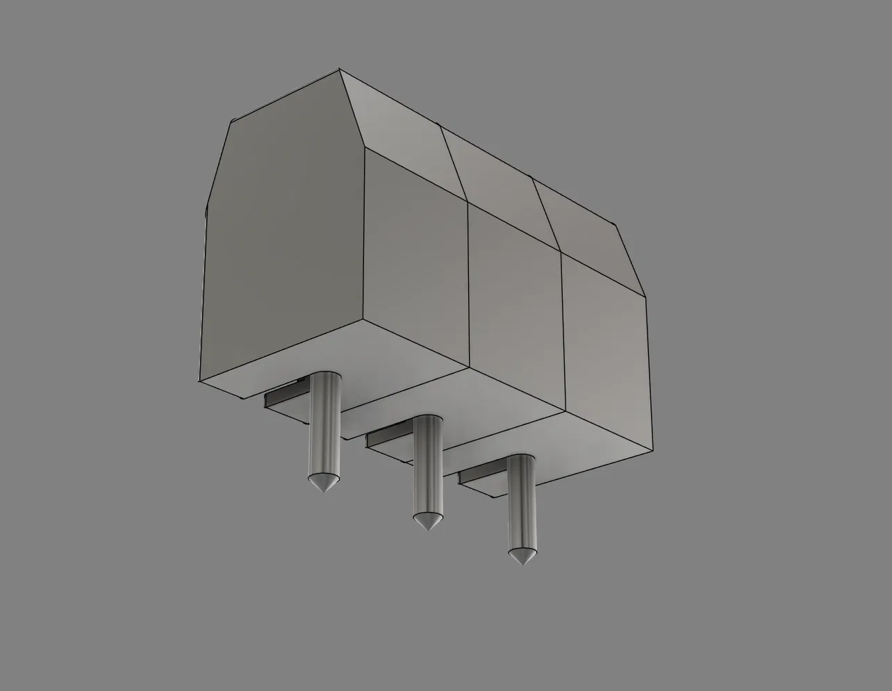 Mẫu cọc vít (screw terminal) bước 5mm loại 3 cổng (triple) dành cho PCB prototyping. Phù hợp để in 3D làm đồ gá/linh kiện thử nghiệm mạch, giúp đấu nối dây nhanh và gọn.