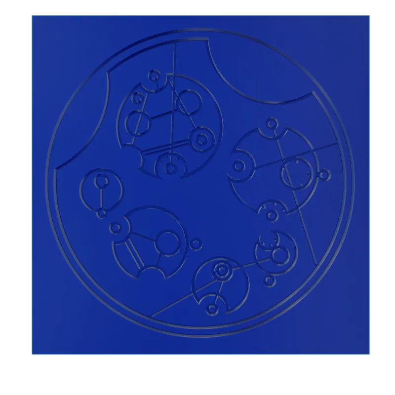 -Thân chính có roundels (mấy cái tròn tròn) ở mặt trong. Phần đế có dòng: "Time and relative dimensions in Space" viết bằng Gallifreyan dạng vòng tròn