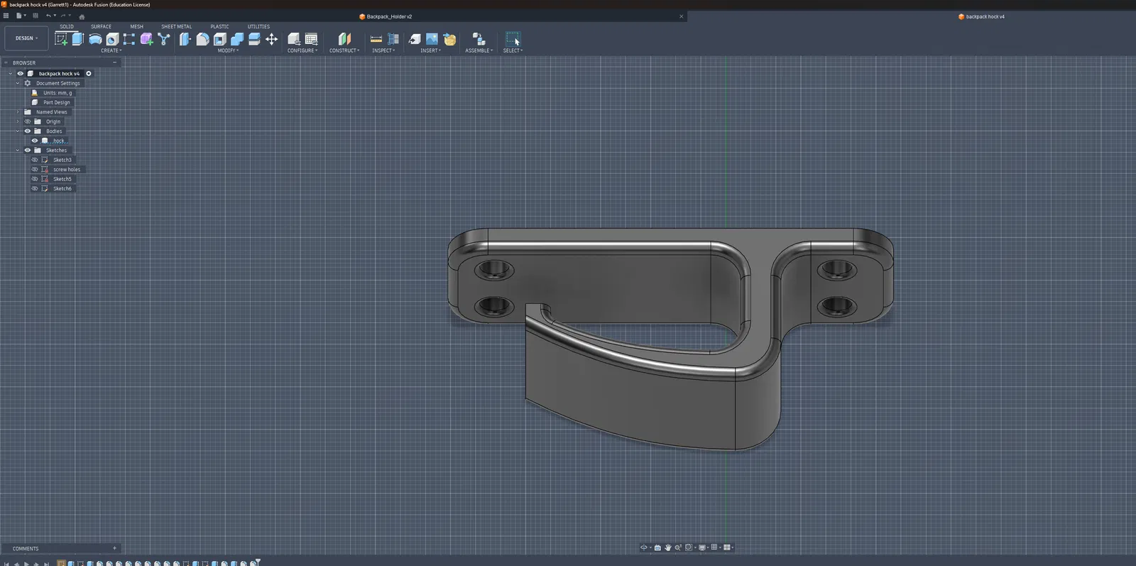 Móc treo ba lô (Backpack Hook) dùng để gắn bên dưới mặt bàn, giúp treo balo gọn gàng. Thiết kế có 4 tham số, khuyến nghị in 20% infill Gyroid, in kèm brim và không cần supports.