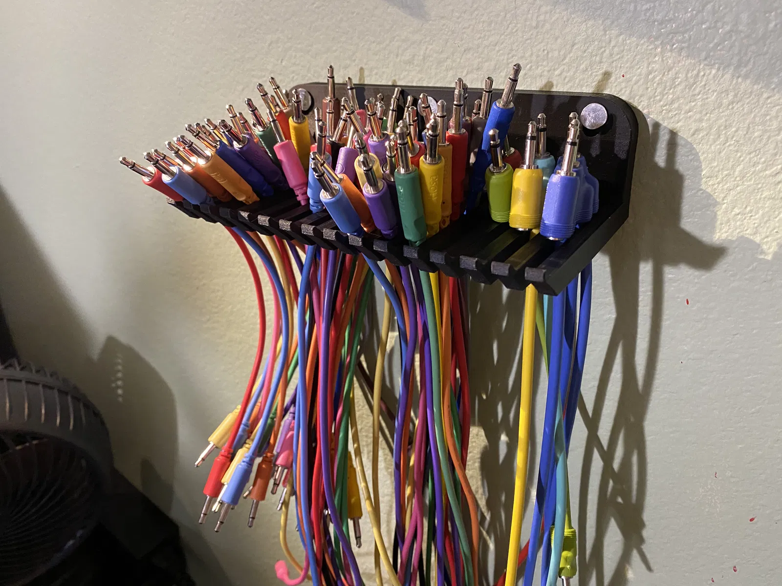 Móc treo cáp gắn tường với 15 rãnh rộng 5mm để sắp xếp gọn gàng dây audio, nhạc, patch và dây máy tính. Mình thiết kế để treo dây patch eurorack 3.5mm, đồng thời canh kích thước để có thể in cùng lúc 2 cái trên Prusa Mini. Treo bất kỳ loại dây nào bạn đang để lạc chỗ! Các rãnh có gờ nhô ở mép cuối giúp dây không bị tuột rơi. Tấm lưng cũng có các lỗ ngắn và rộng để bạn chọn kiểu bắt vít/gắn phù hợp. In được mà không cần supports.