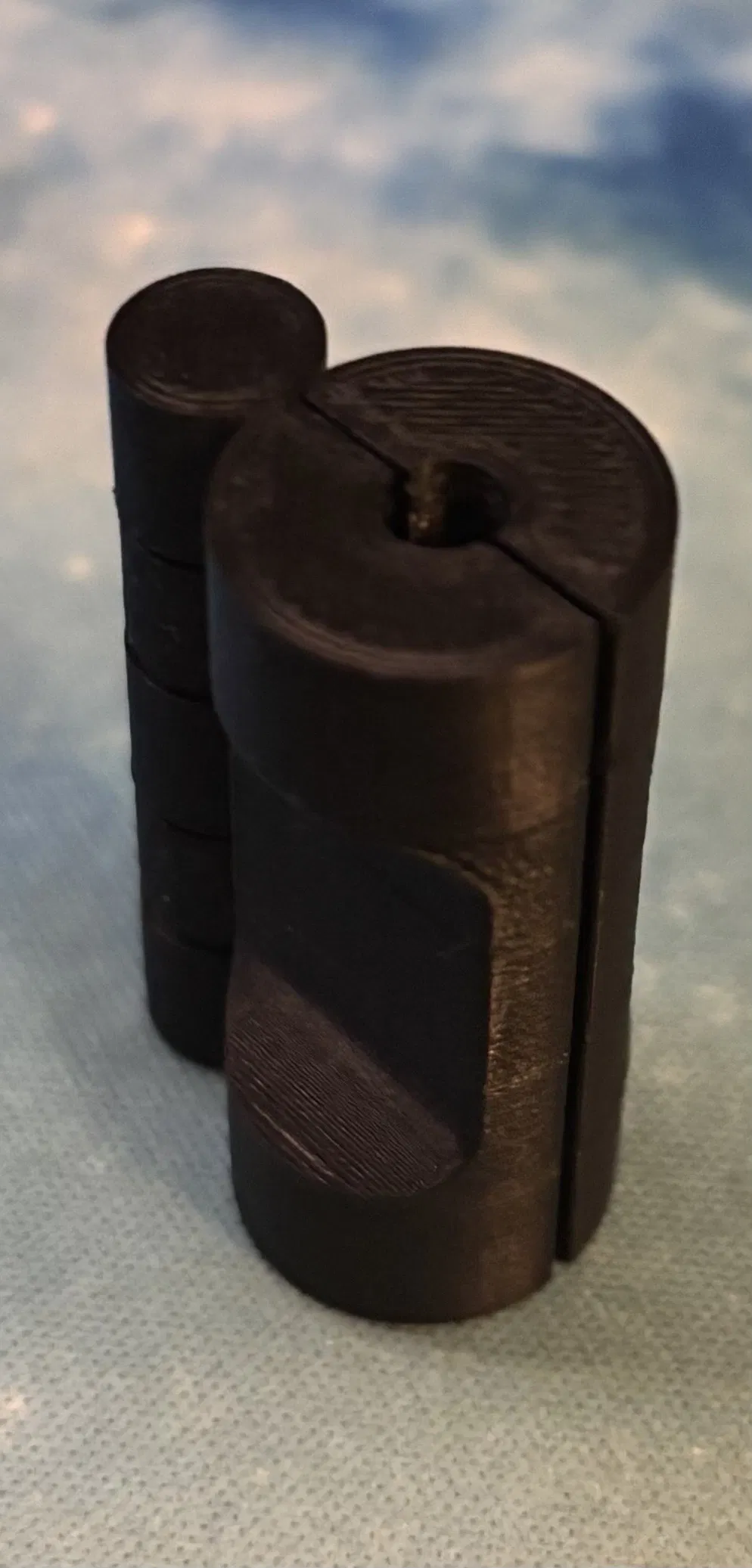 Model có built-in supports cho khoảng cách bản lề (hinge spacing) và phần đó được in bằng PLA. Sau khi in có thể gỡ ra, nhưng thật ra mình thấy không quá cần thiết, dù mình cũng có cạy ra bằng một cây nhựa nhỏ (plastic pick).