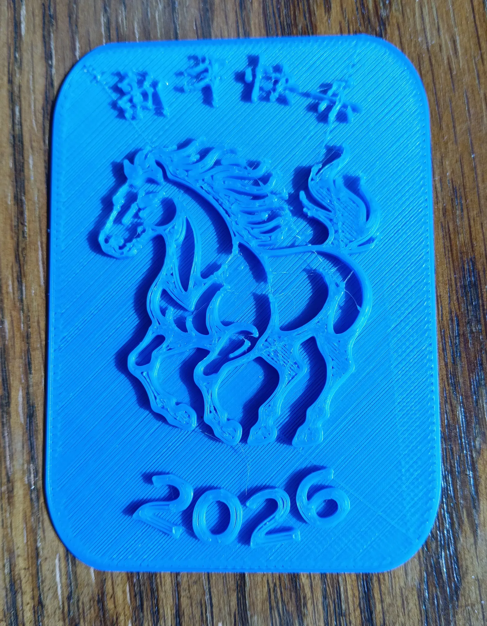 Các mẫu nằm trên Tinkercad ở đây: https://www.tinkercad.com/things/kG2uEpG5GWJ-year-of-the-horse-2026 và được làm dựa trên các file SVG tôi tạo bằng Inkscape.