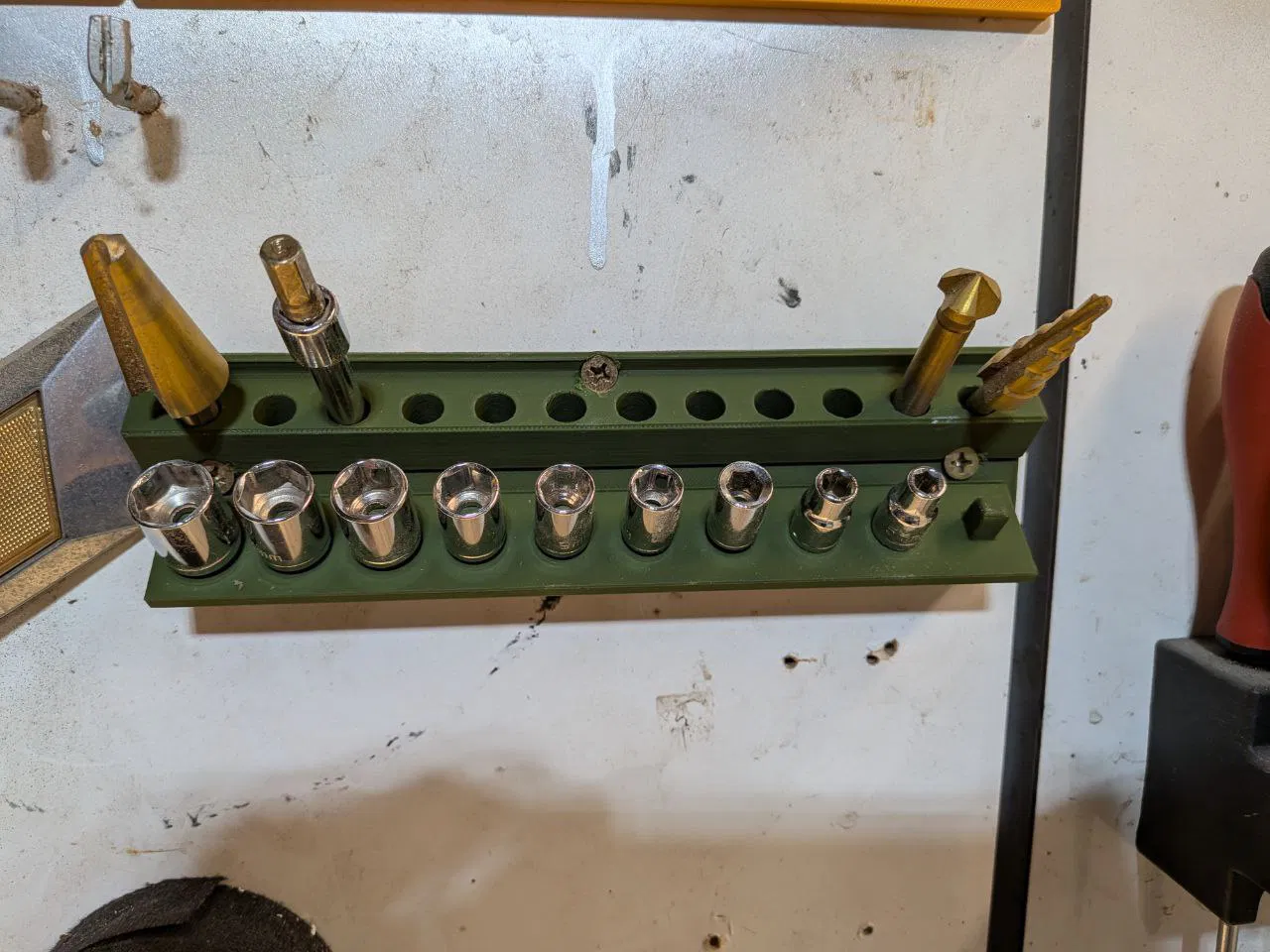 Mẫu giá giữ/treo đai ốc 1/4 inch (9mm) cho workshop, thiết kế universal, dễ in và không cần support. Phù hợp gắn tường để sắp xếp đồ gọn gàng, in nhanh và tiện dụng.