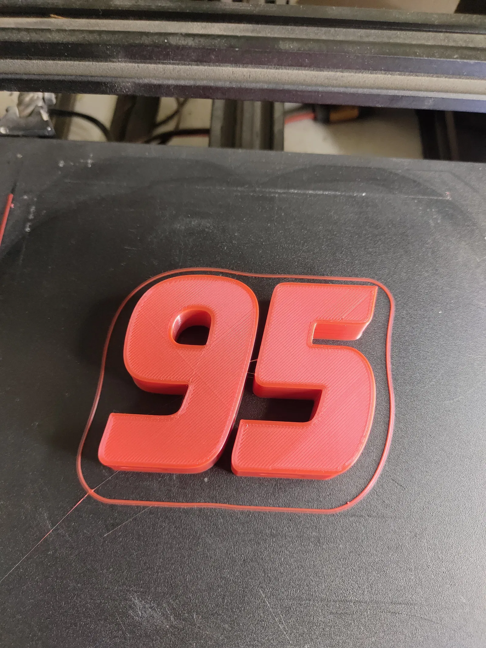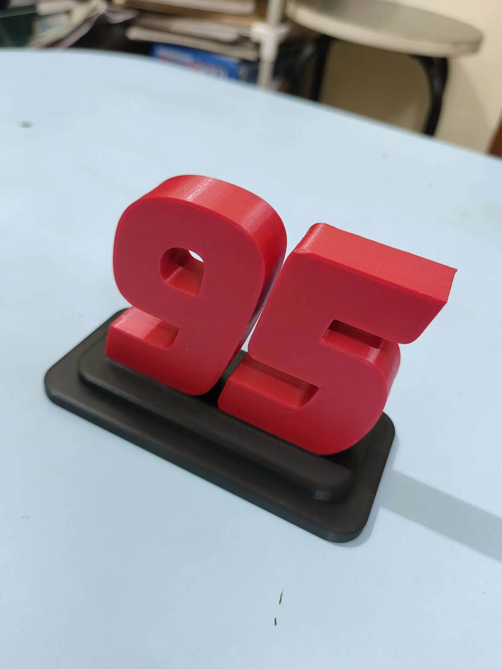 Mô hình “95” phong cách đua của Lightning McQueen để trang trí bàn, đi kèm chân đế press-fit dạng khe-ngàm. In PLA dễ, không cần supports, không cần keo, lắp ráp nhanh gọn và đứng rất vững.