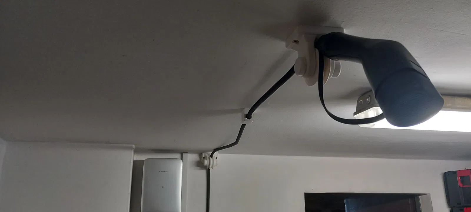 Mẫu phụ kiện giúp dẫn và cố định cáp Wallbox đi qua trần nhà gọn gàng, hạn chế rối và vướng khi sử dụng. Phù hợp cho việc bố trí đường dây sạch sẽ trong gara hoặc khu vực sạc.