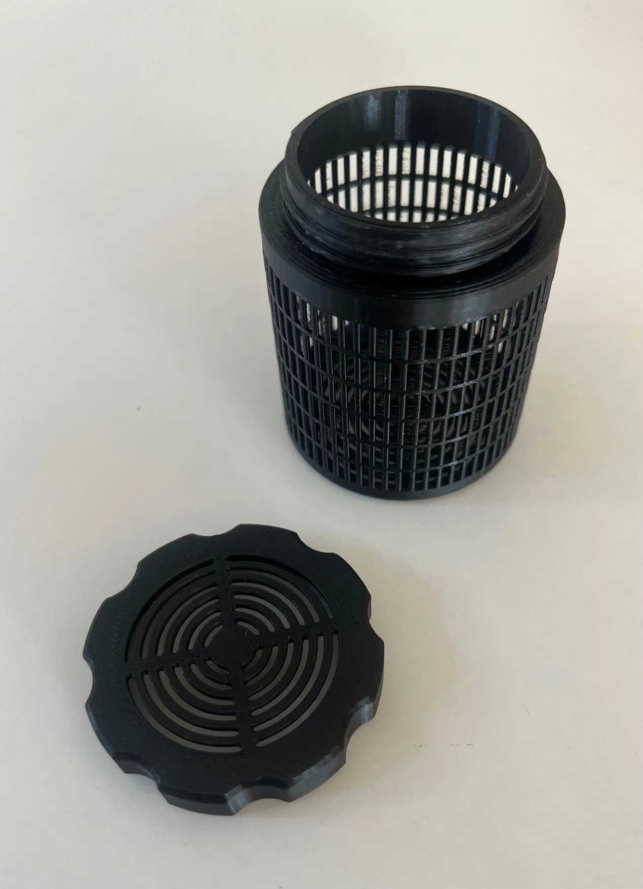 Hộp đựng Silica Gel cao 60 mm, thiết kế vừa đặt bên trong cuộn filament để hỗ trợ hút ẩm và giữ filament khô ráo. In PLA hoặc PETG, không cần supports.