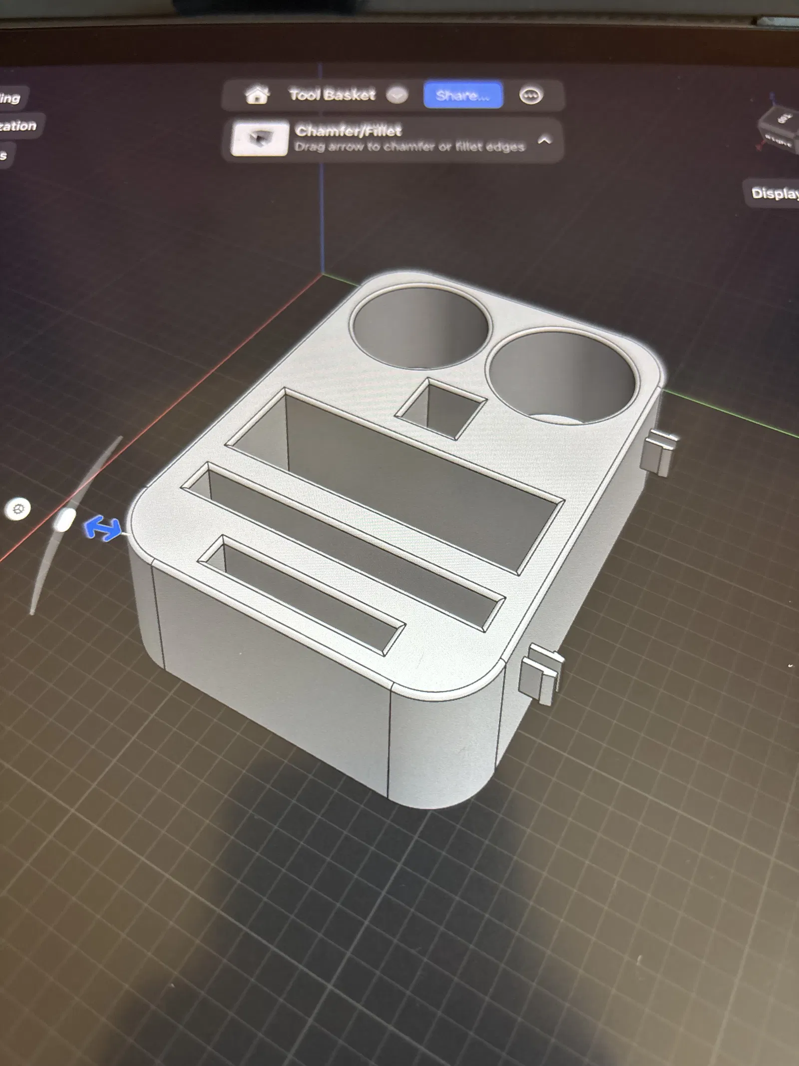 Mẫu này là một giỏ đựng dụng cụ cỡ nhỏ dành cho 5M Pro. Khi in, các móc treo nên được xoay nằm ngang (đặt nghiêng sang một bên) và thêm support nhỏ cho phần lỗ.