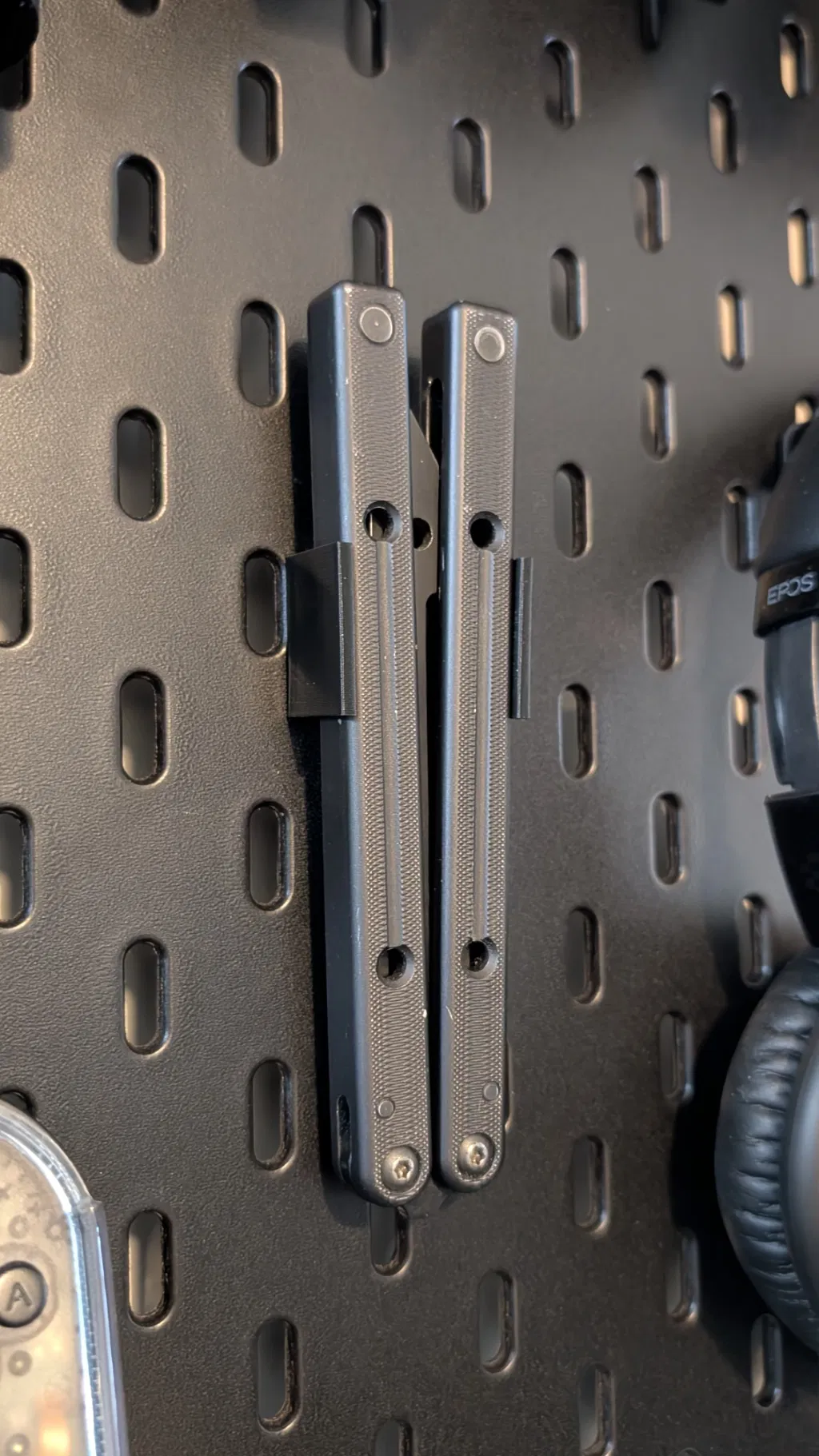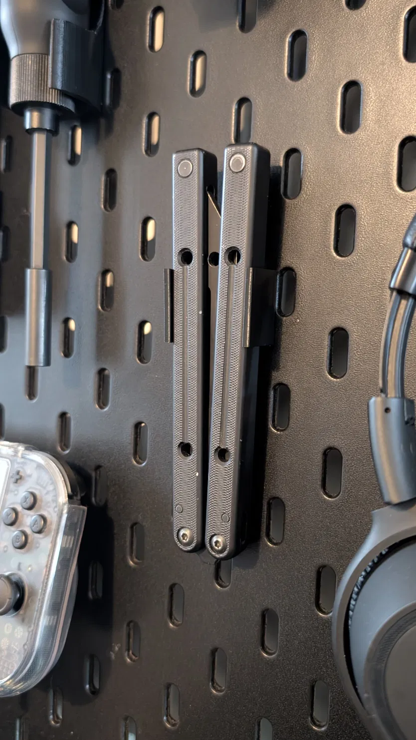 Giá treo trưng bày Balisong/Butterfly Knife gắn lên IKEA SKADIS, thiết kế cho Squid Industries Squidtrainer V2 nhưng cũng phù hợp nhiều mẫu balisong khác. Có thể nhắn để mình chỉnh kích thước và làm thêm size.