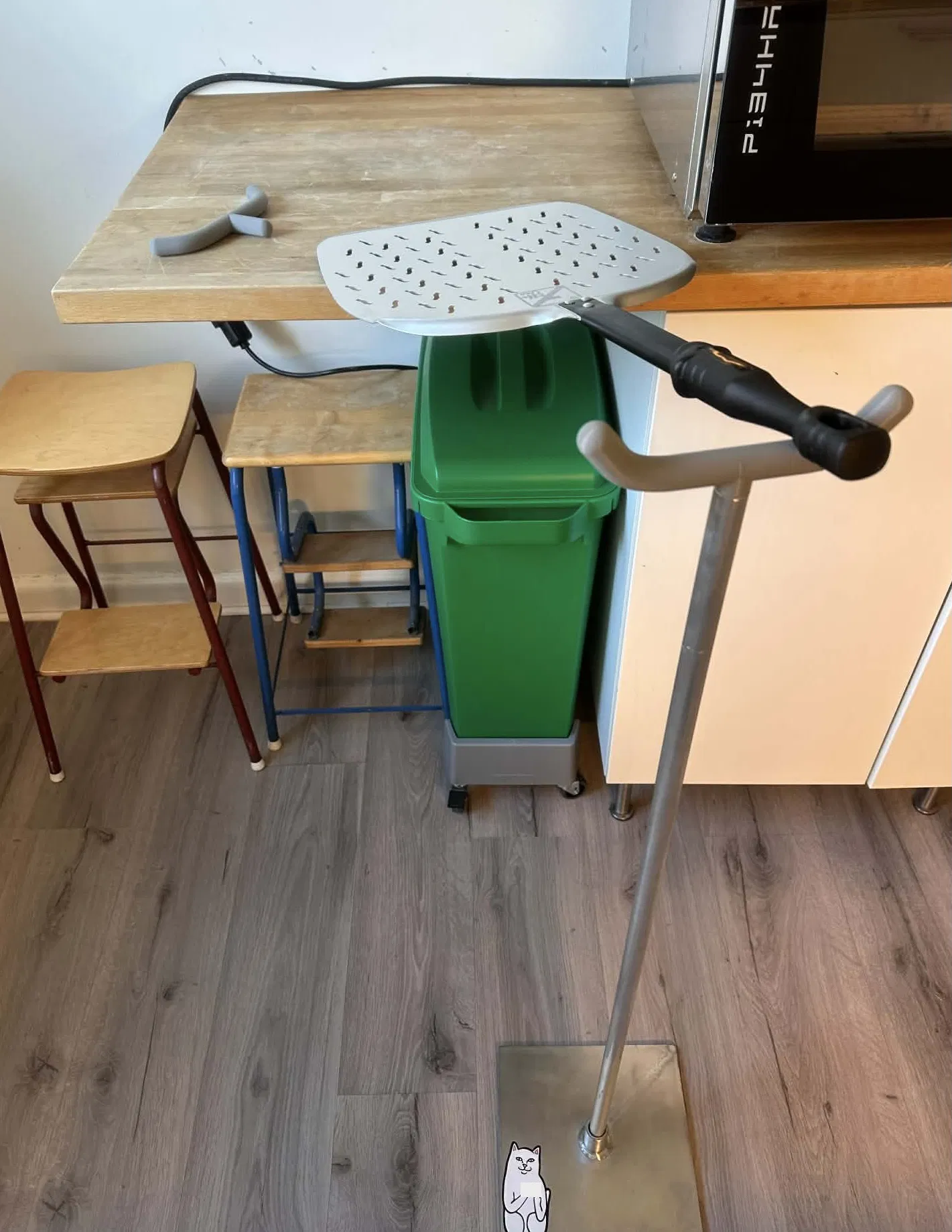 Giá treo/giá đỡ cho Pizzaspade (pizza peel/ pizza spade), giúp bạn rảnh tay thêm khi cần thao tác với cây spade. Thiết kế chuẩn cho ống nhôm 20 mm, đường kính trong 18 mm.