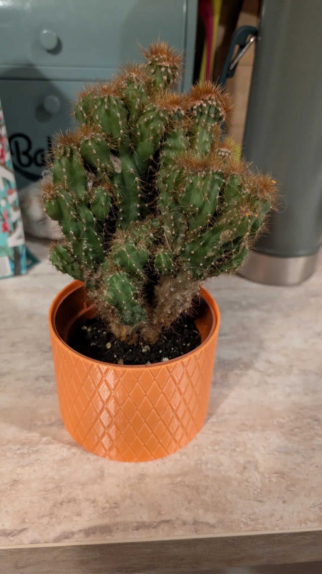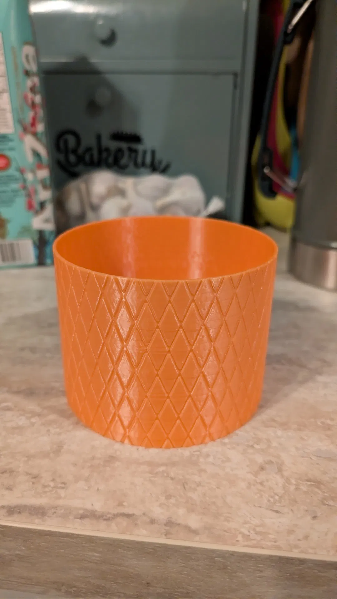 Chậu cây in 3D hoa văn knurled kim cương, che vân layer rất tốt. Vừa chậu ươm 10cm, có 2 chiều cao 8cm & 10cm. In không cần supports; khuyên 3–4 walls để kín nước.