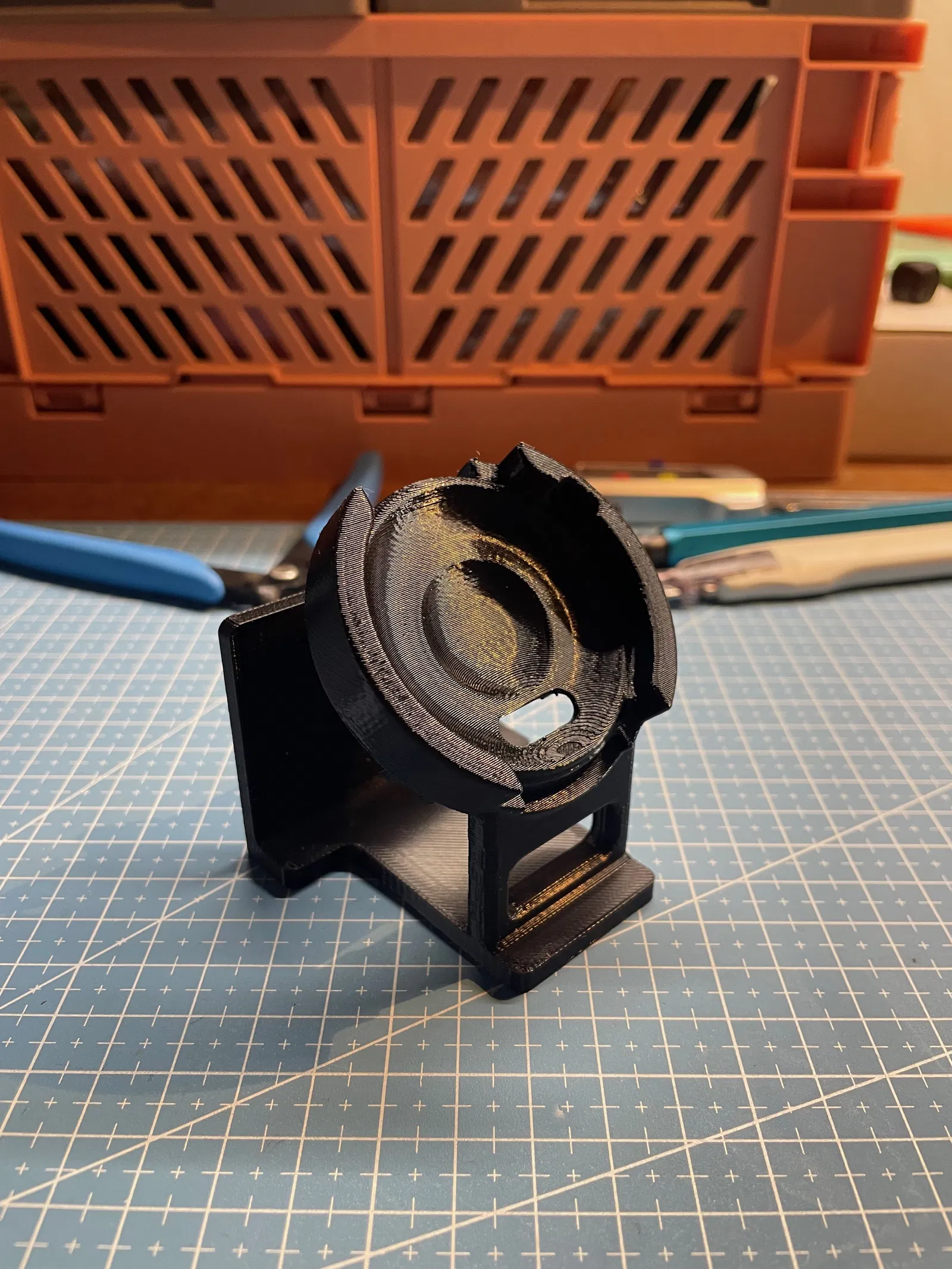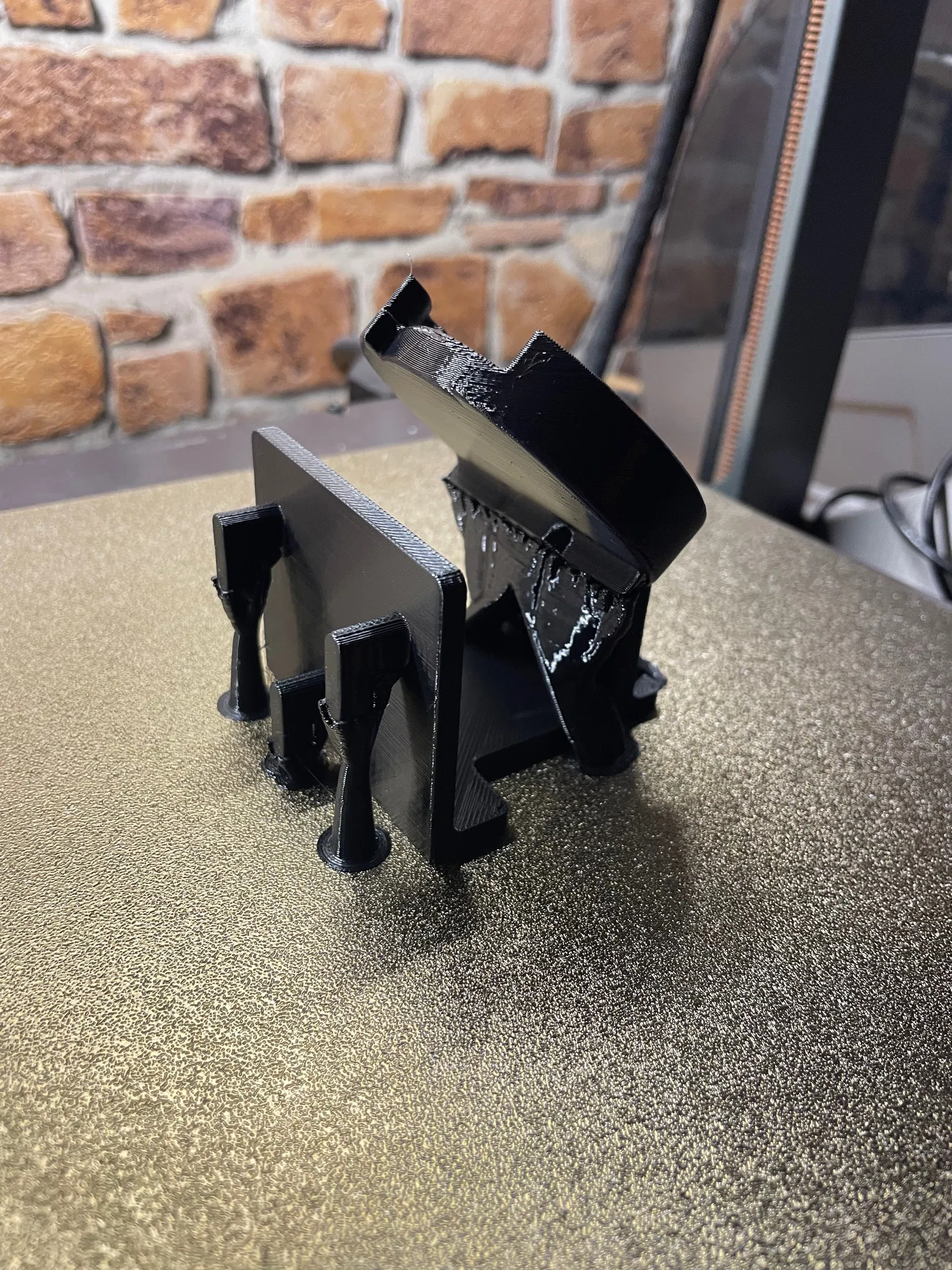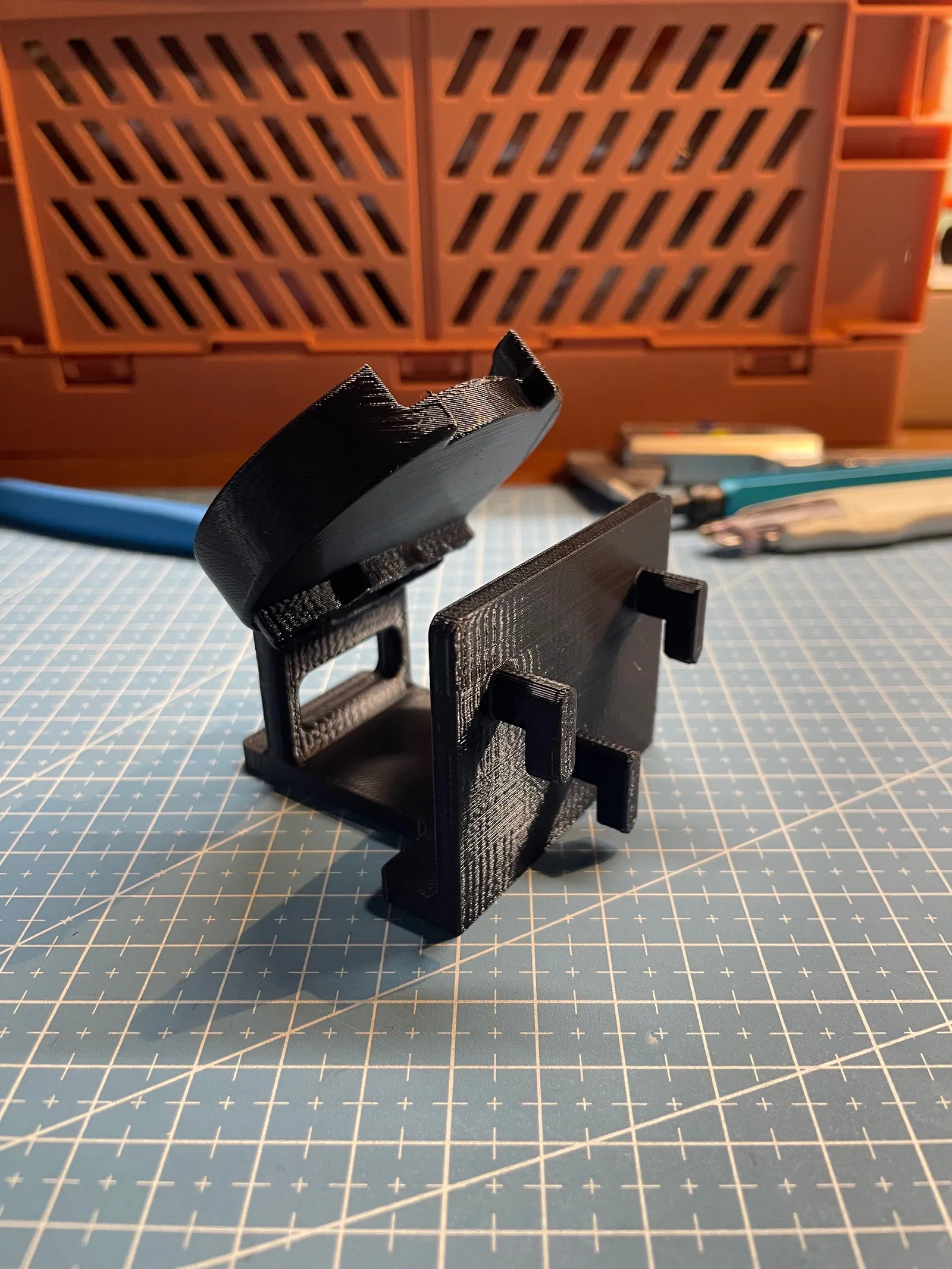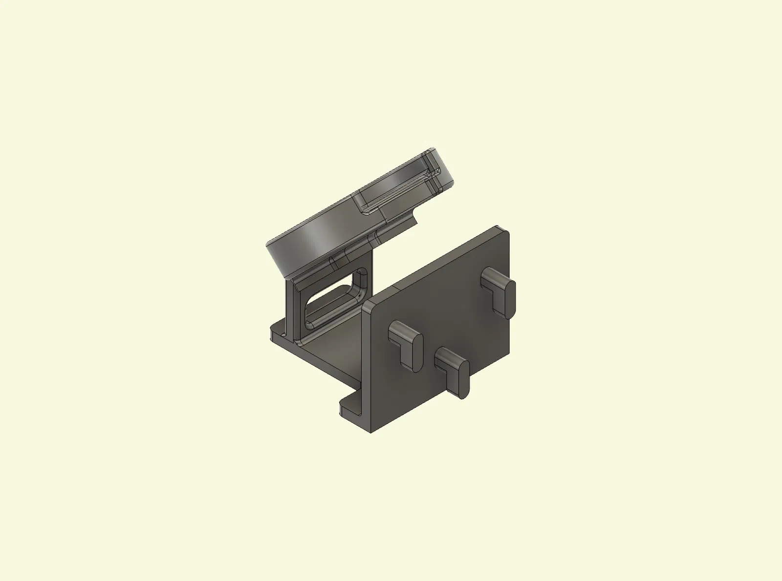 Mình ghép hai phần lại thành một dock duy nhất, được tối ưu riêng để gắn lên pegboard IKEA SKADIS. Trong lúc tích hợp ngàm SKADIS, mình đặc biệt chú ý giữ nguyên bán kính bo góc (fillet radii) và hình học tổng thể, để mẫu cuối cùng vẫn đồng nhất về mặt thẩm mỹ lẫn kết cấu với dock sạc gốc.