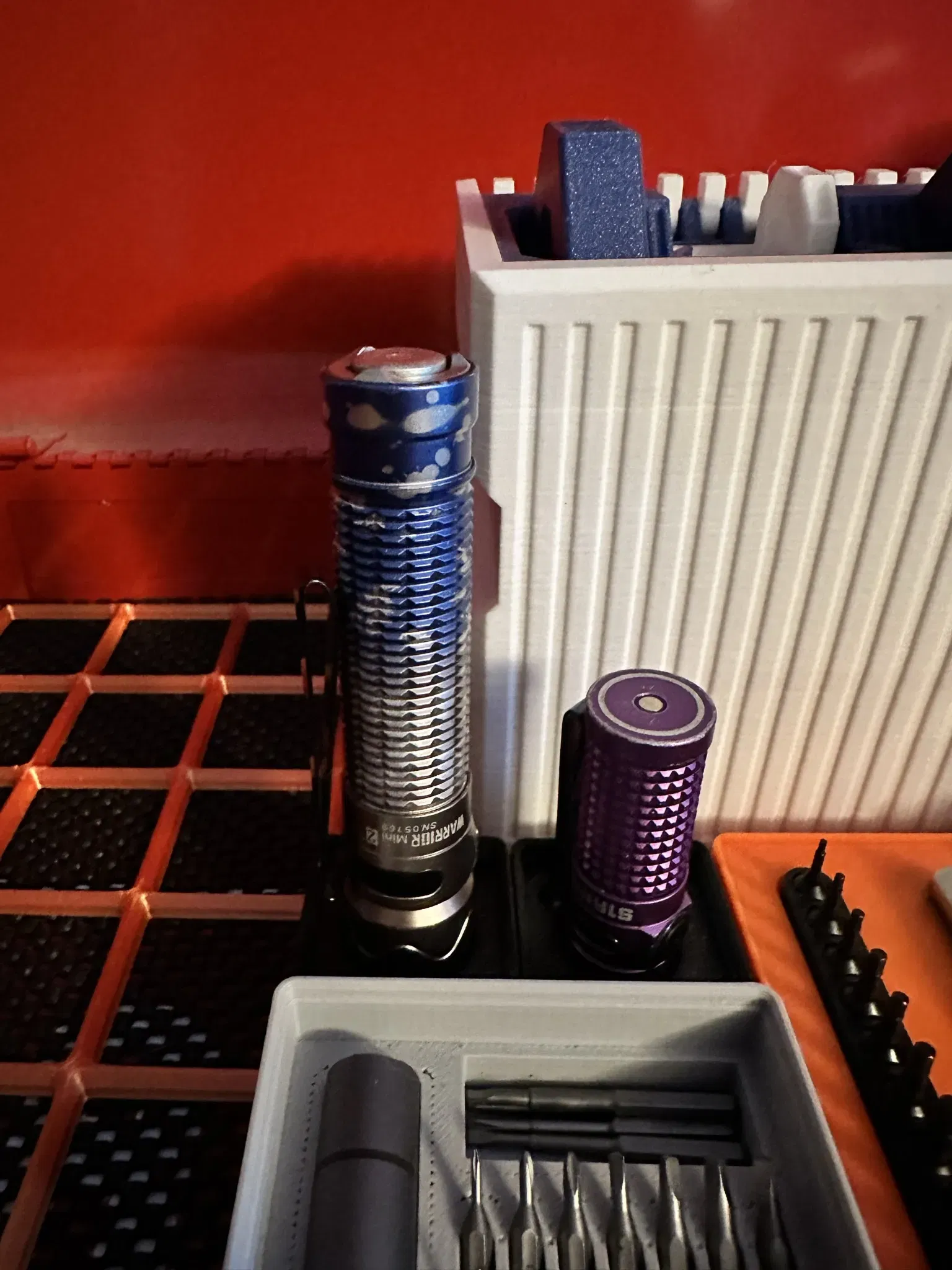 Một mô-đun Olight Warrior Mini 2 cho dự án Gridfinity của Zack Freedman.