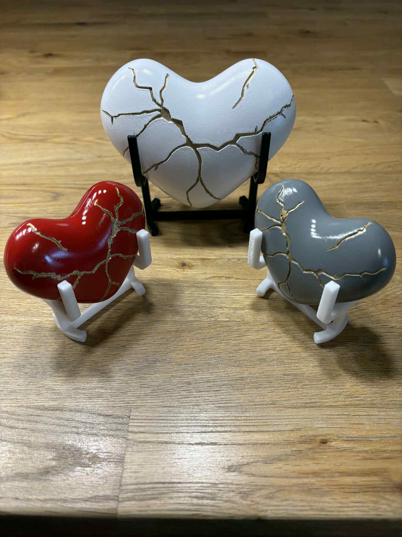 Bộ đế trưng bày đơn giản gồm 2 kích thước, dùng để đặt mẫu Kentsugi Heart hoặc các vật có hình trái tim. Phù hợp để trưng trên bàn, kệ hoặc làm phụ kiện display gọn gàng.