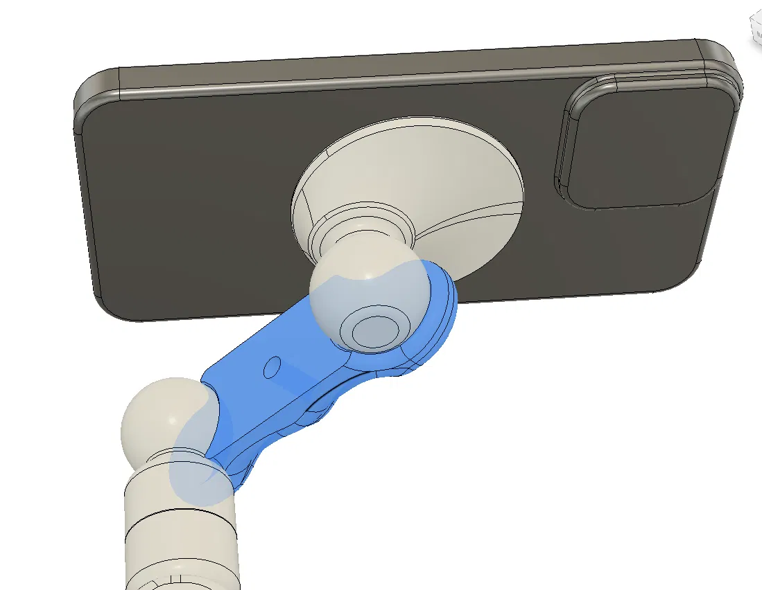 Đây là tay đỡ điện thoại dạng nhiều khớp (multiple joints) có thể mở rộng. Phần đáy lắp vừa long nut M6 (tối đa 27mm), nên có thể gắn vào fishing magnet screw (M6). Phần trên, bạn có thể dùng super glue để dán nam châm điện thoại cỡ khoảng 58mm.