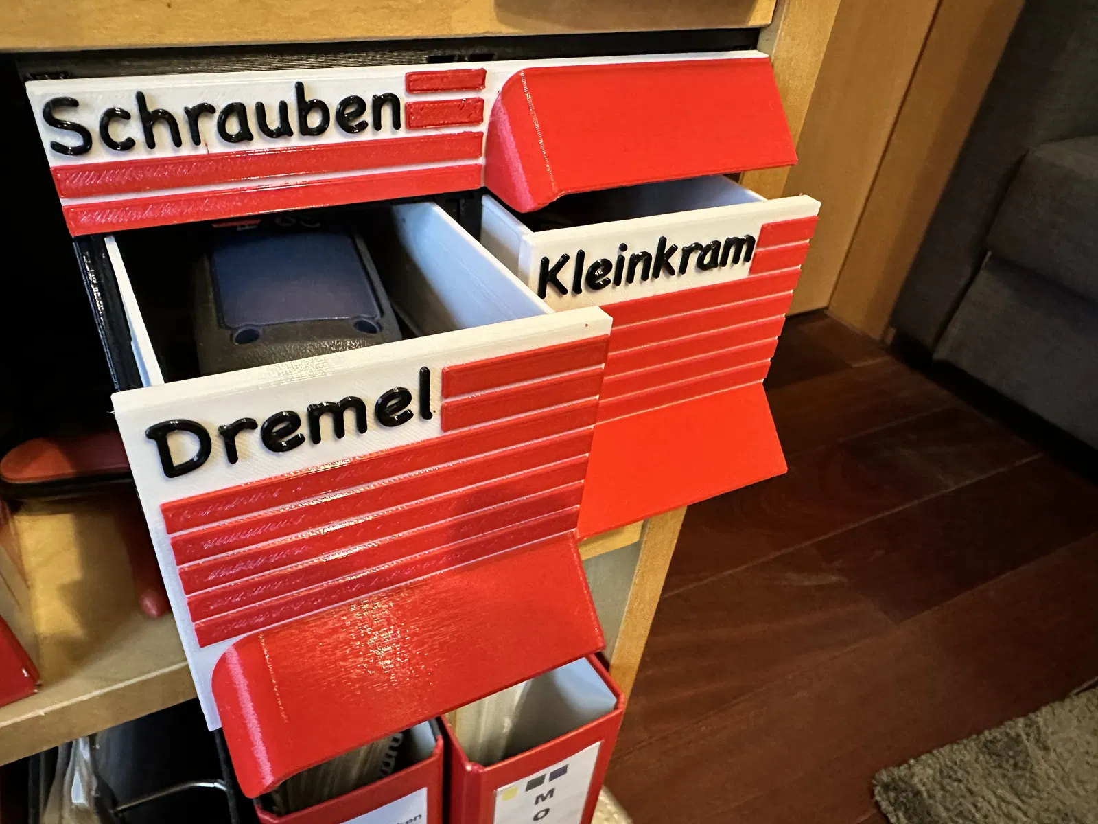 Bản remix này thay tay nắm decor của faceplate Gen2 từ kiểu tiêu chuẩn (không hợp gu) sang thiết kế mới nhìn hiện đại hơn, phù hợp để hoàn thiện mặt trước ngăn kéo/organizer gọn gàng và đẹp mắt.