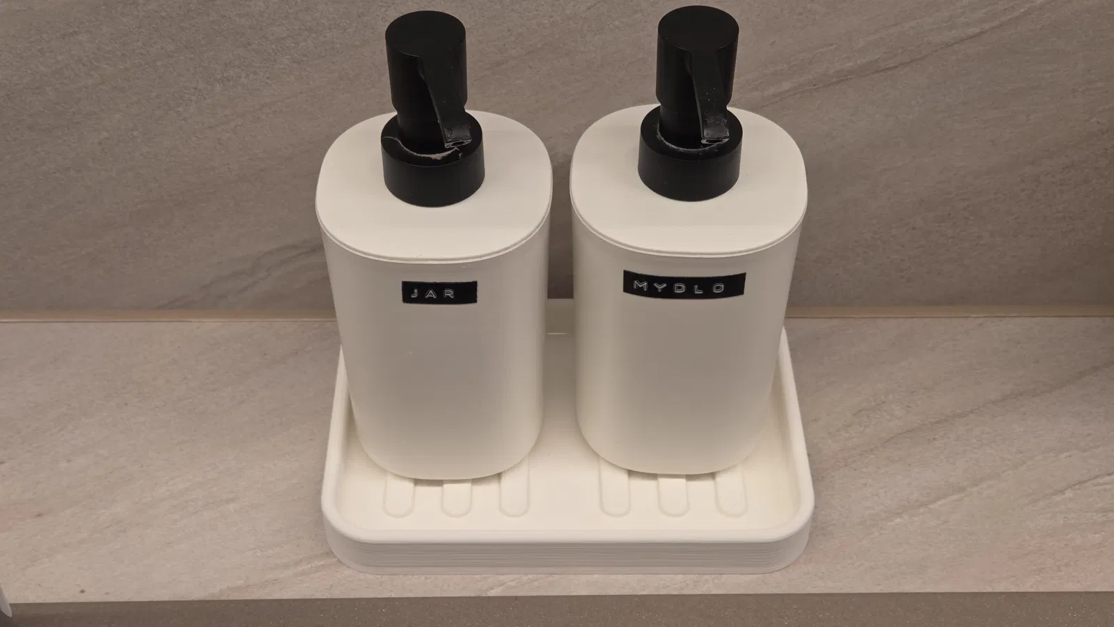 Khay/đế đỡ bản lớn hơn cho Ikea Storavan, giúp hứng phần xà phòng bị nhỏ giọt từ bình nhấn để không chảy xuống mặt bàn, giữ khu vực bồn rửa gọn gàng và sạch sẽ hơn.