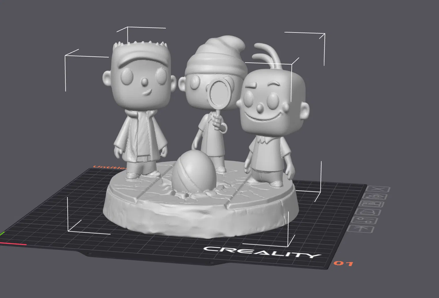 Mô hình figure Ed, Edd & Eddy chủ đề “The Amazing Jawbreaker”. Bạn có thể scale theo kích thước mong muốn; khuyến nghị in layer height 0.16 mm hoặc thấp hơn để chi tiết sắc nét. Một số vị trí sẽ cần support.