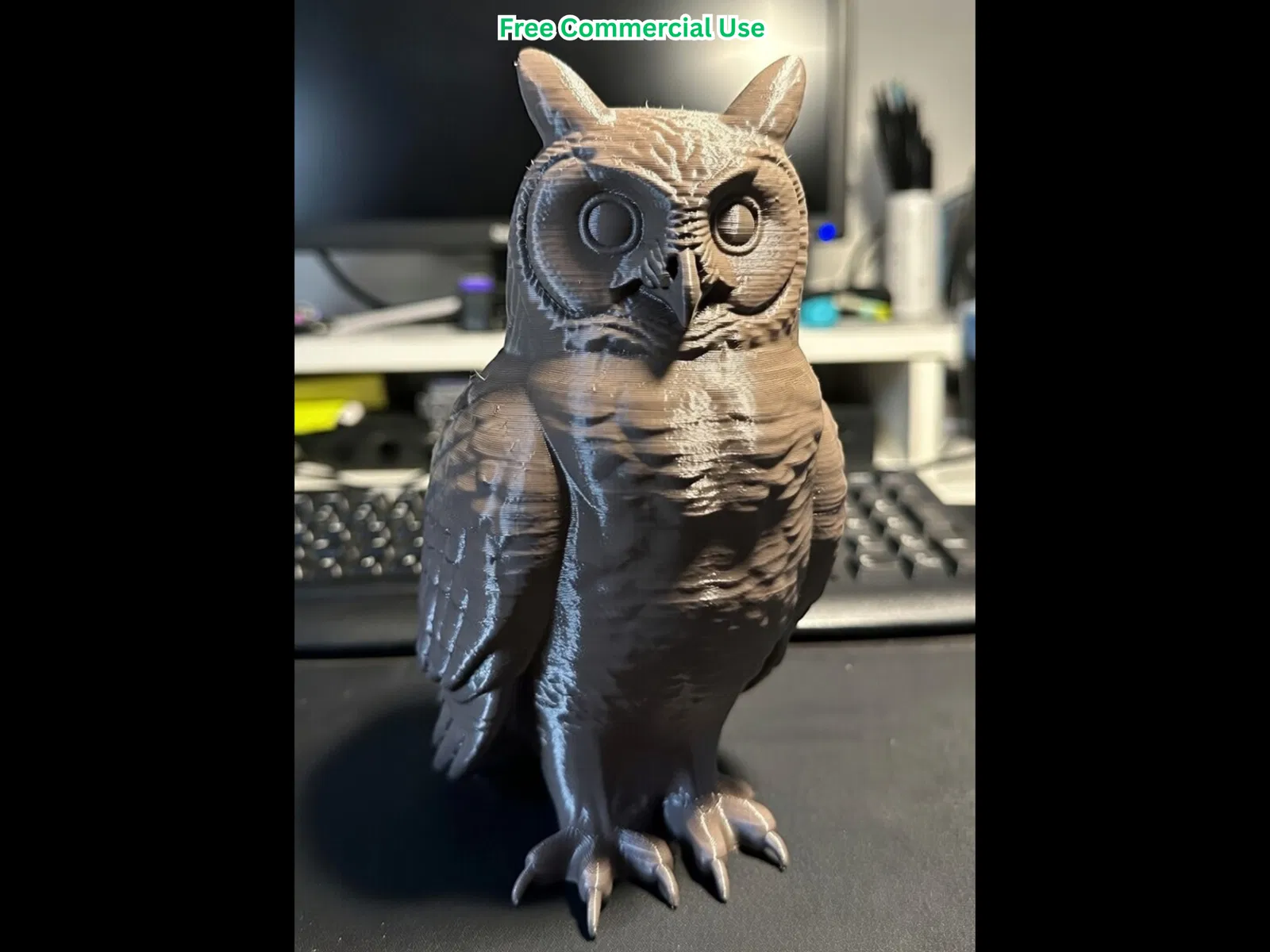 Mẫu tượng cú sừng lớn dáng ngồi chi tiết nhưng vẫn dễ in, tối ưu cho in đơn sắc và kiểm soát overhang chắc chắn. Phù hợp in FDM, cho ra bề mặt có layer lines rõ như bản in thực tế.