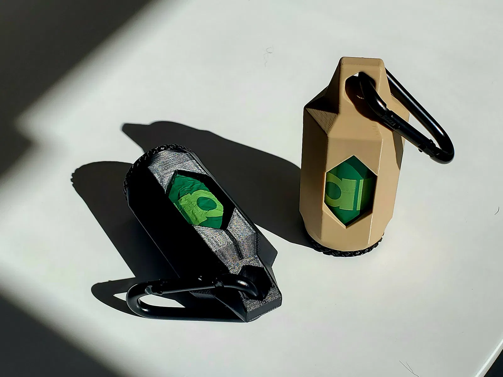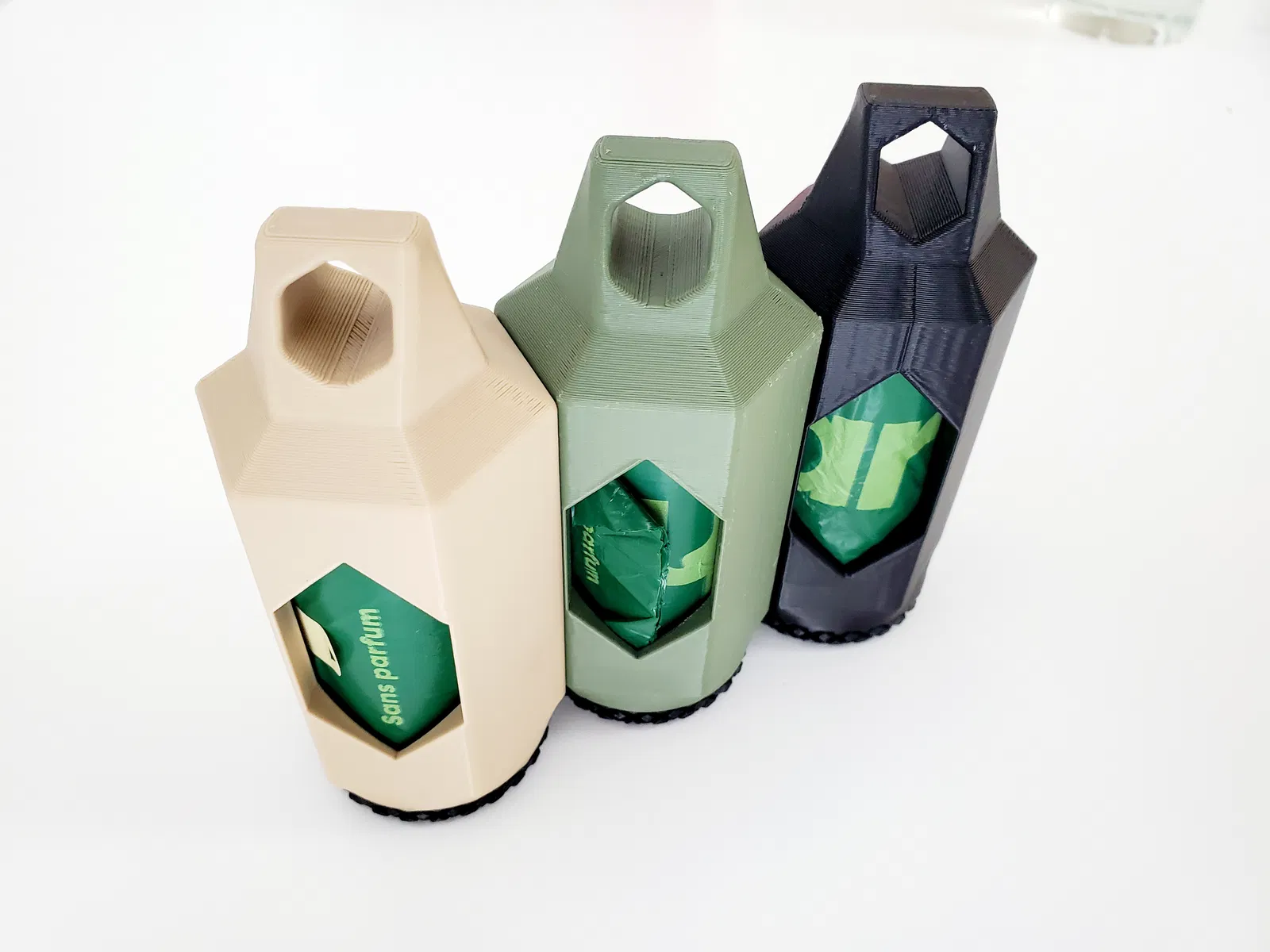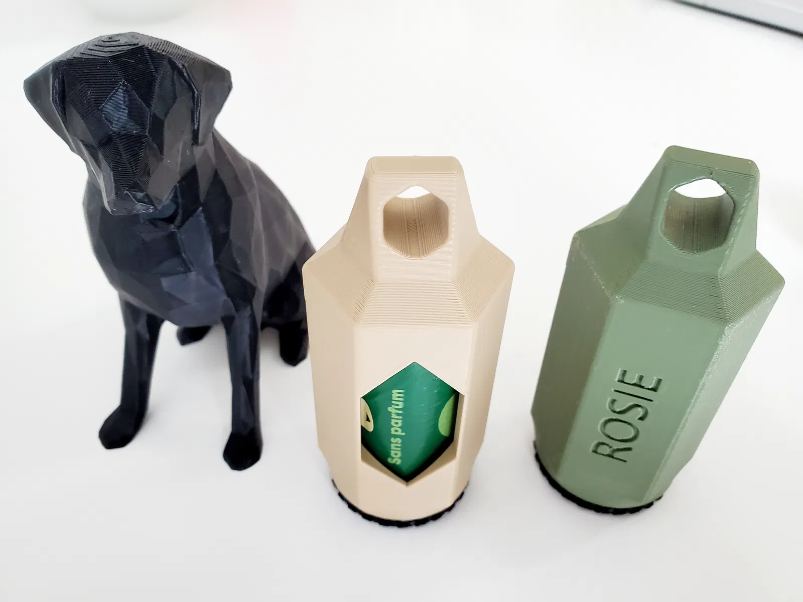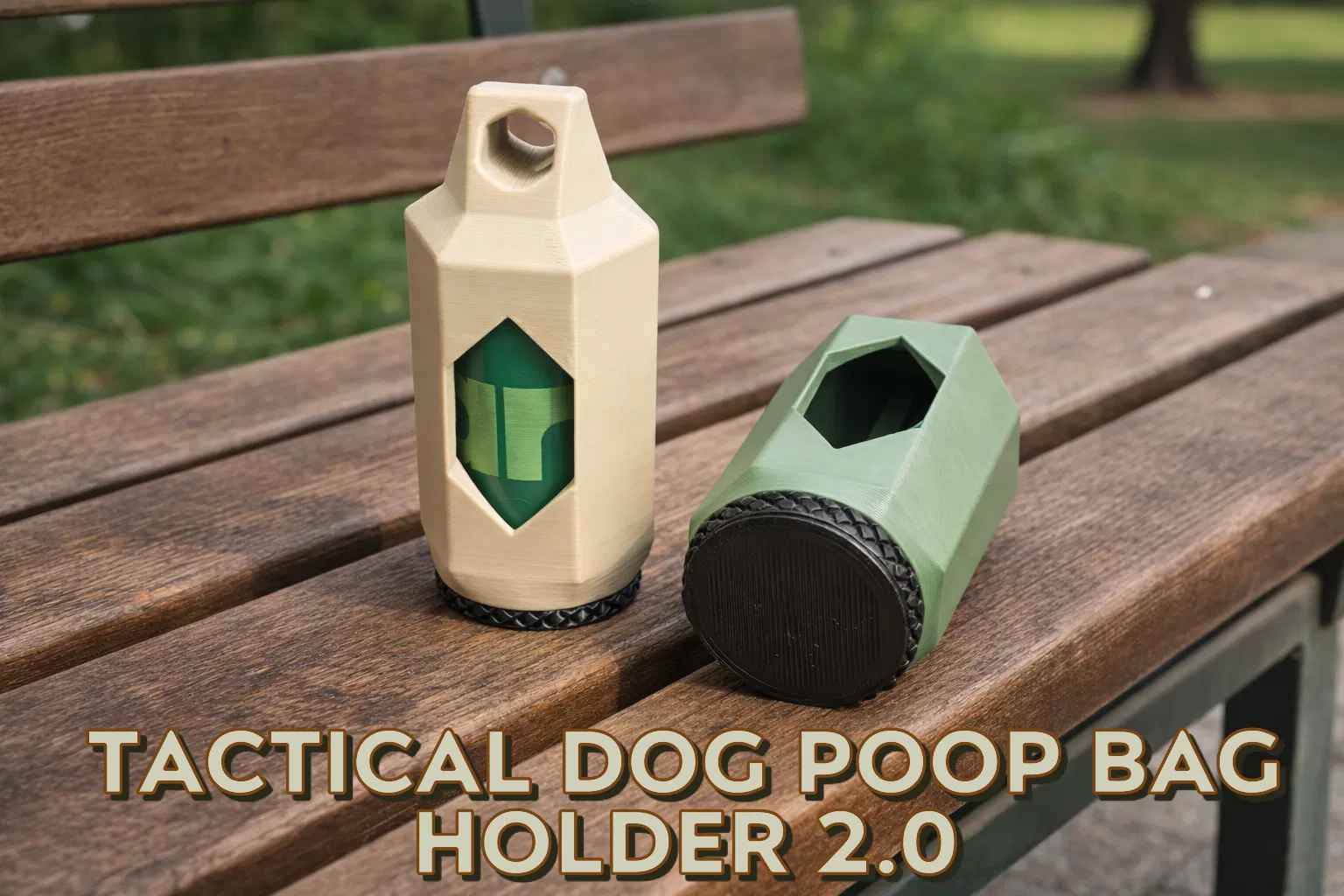 Móc đựng túi nhặt phân này còn “cứng cựa” hơn nữa! 💪 Mình dùng kết cấu lục giác (hexagon architecture) để gia cố thành và tăng độ bền cho cái vòng treo phía trên. Bề mặt thành phẳng rất hợp để dập chữ nổi (embossed text) cho tên thú cưng theo ý bạn. Mình làm nắp vặn (ở đáy) dạng low profile, có vân nhám knurled để dễ bám tay, đi dắt chó mọi thời tiết vẫn thao tác ngon lành.