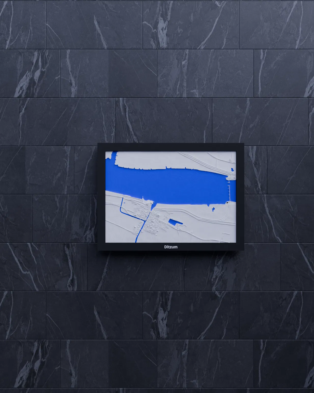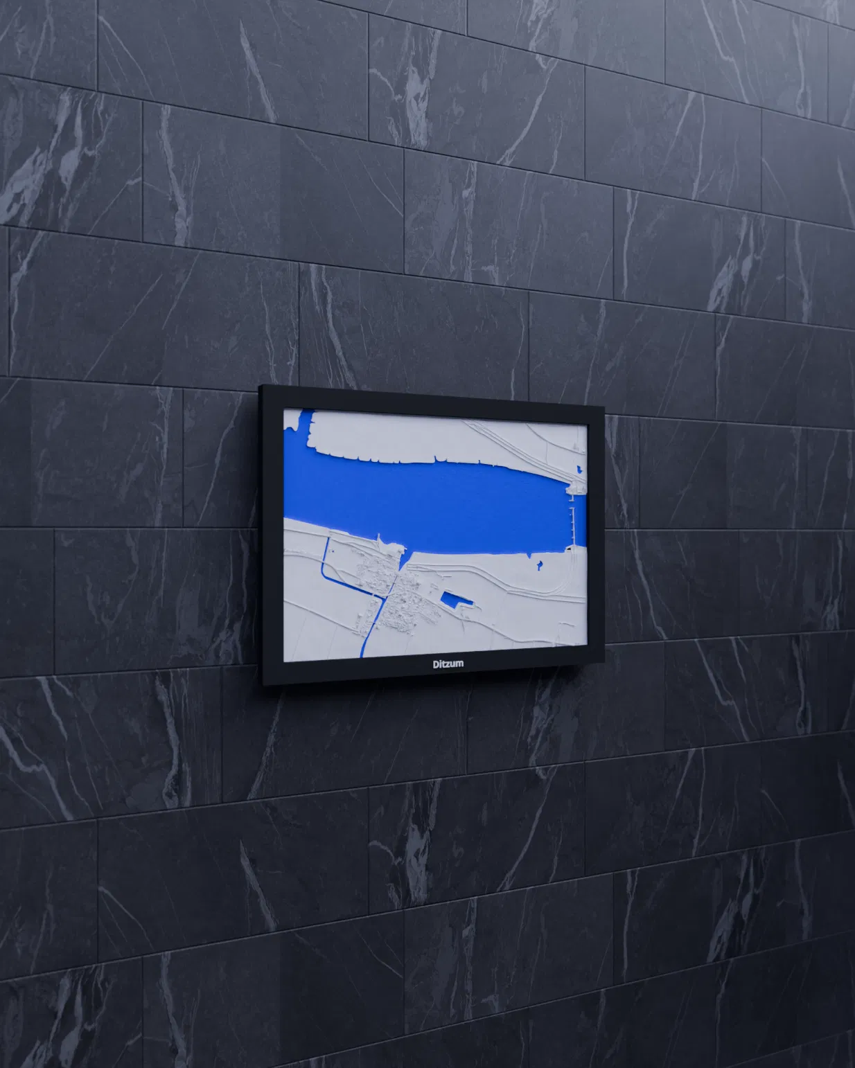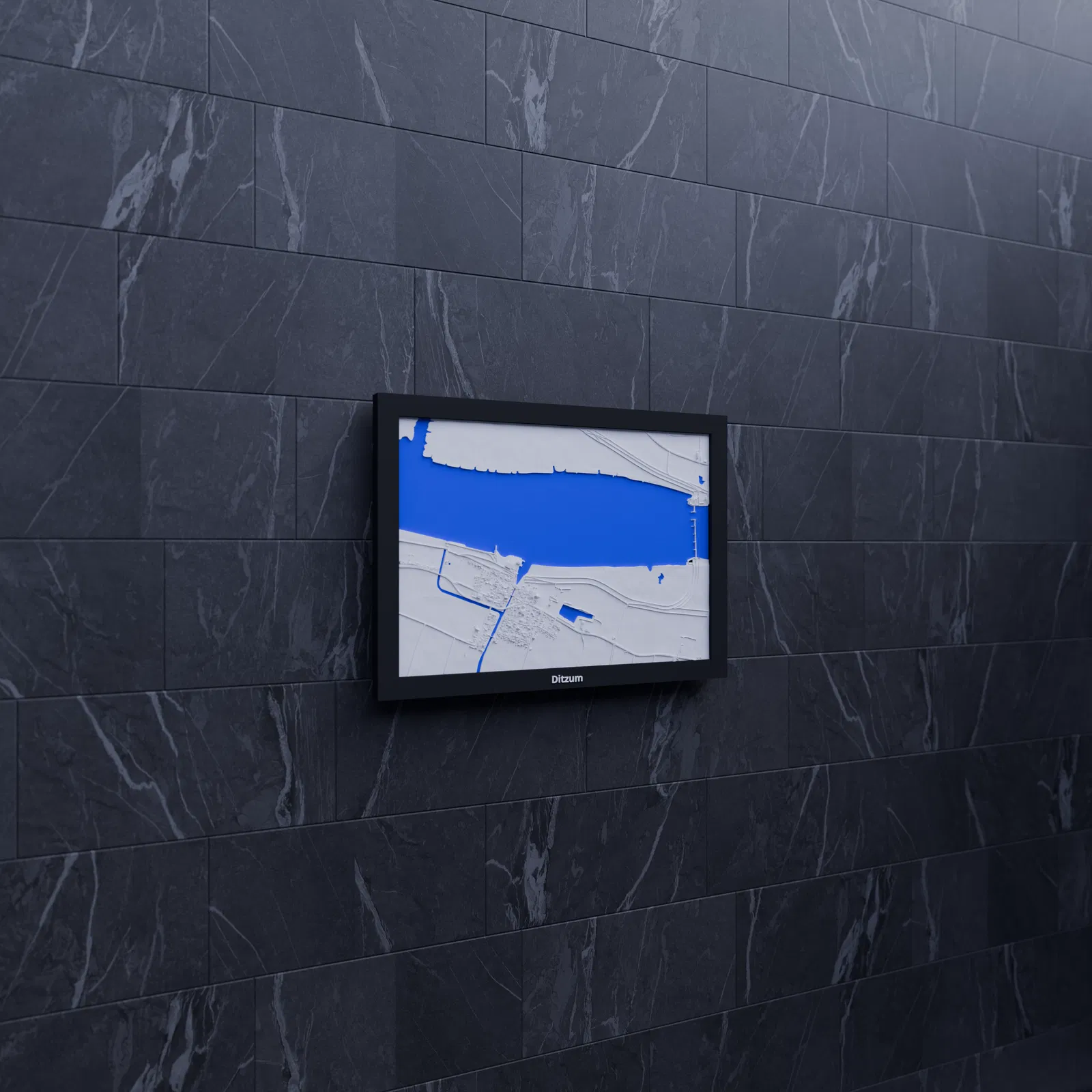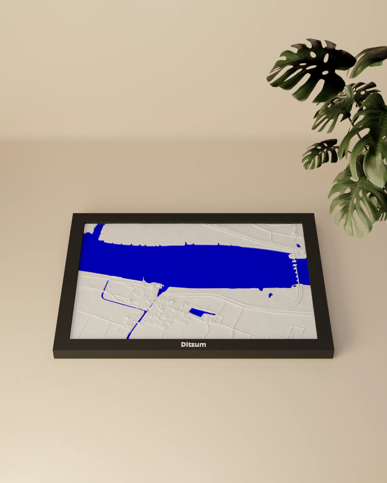 Mô hình địa hình 3D thu nhỏ của Ditzum (Đức) dựng từ dữ liệu địa lý, thu nhỏ khu vực 2.820 × 1.971 km thành kích thước 170.5 × 119.5 mm. Có frame kèm, phù hợp in multicolor hoặc single color để trưng bày.