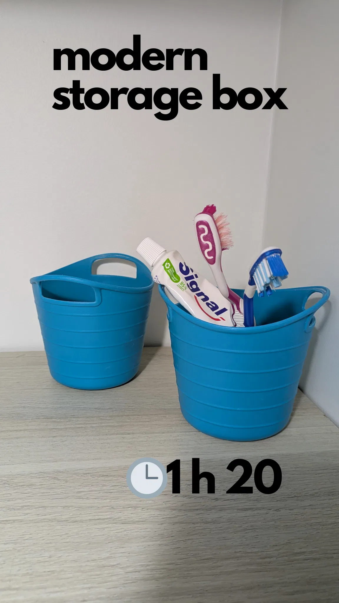 Hộp lưu trữ hiện đại (moderne storage box) nhỏ gọn, có tay cầm đôi và bề mặt vân sọc giúp cầm chắc tay. Phù hợp để sắp xếp đồ phòng tắm, bàn làm việc hay bếp; tối ưu in nhanh chỉ 1h20.
