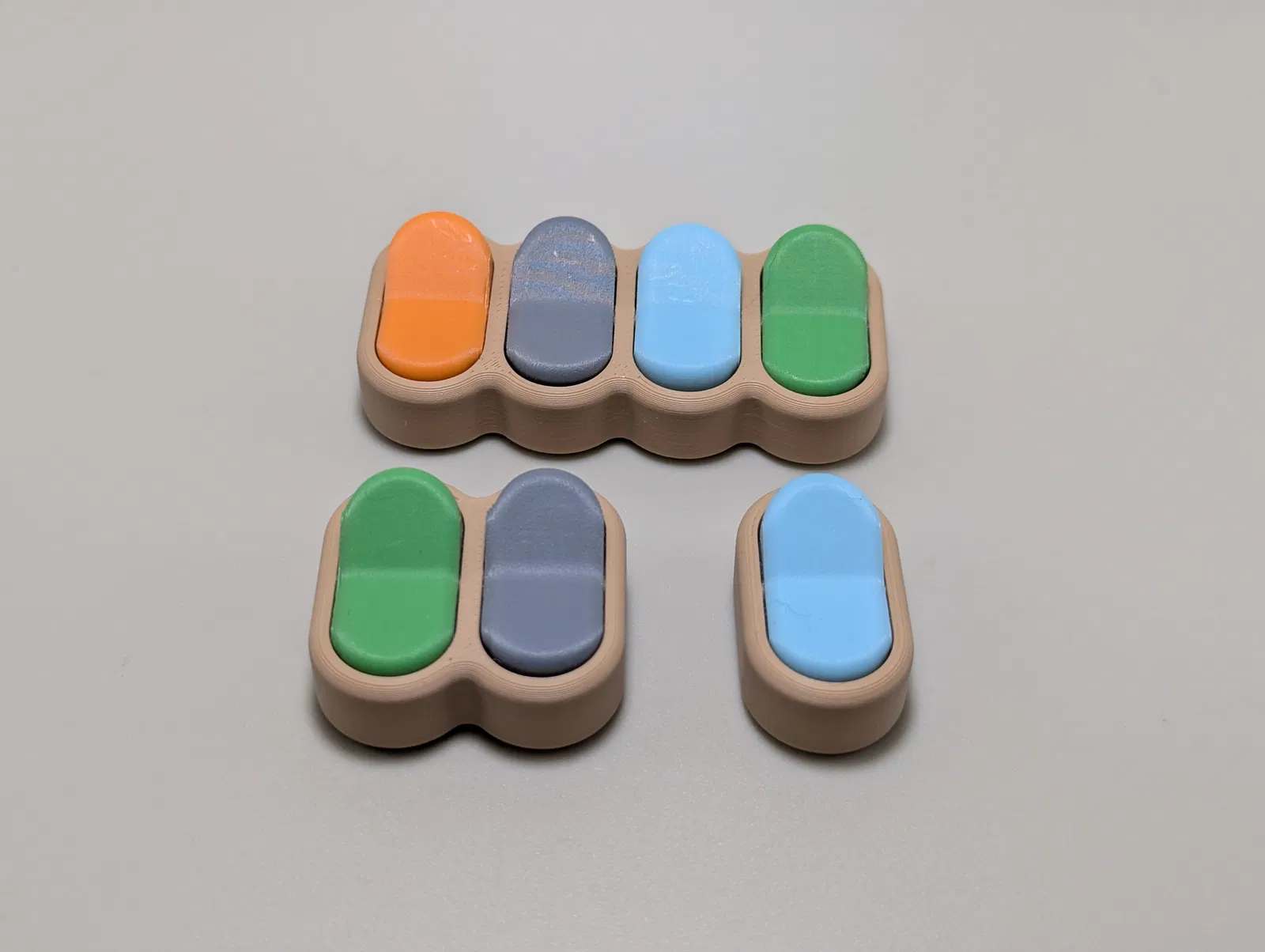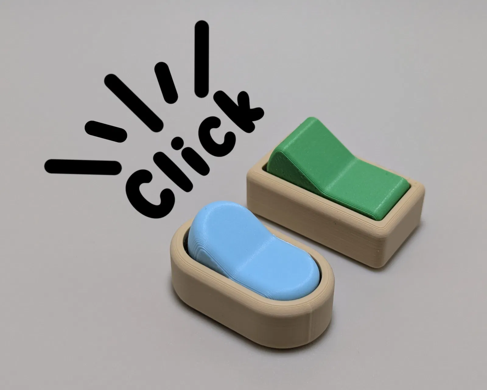 Rocker Fidget Switch là mẫu công tắc fidget kiểu rocker có tiếng “click” khi nhấn. Có bản vuông/tròn, 1–2–4 switch và tùy chọn vòng móc keychain. Lưu ý PLA và màu sắc ảnh hưởng độ nặng và tiếng click.