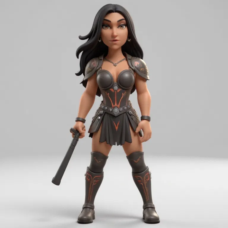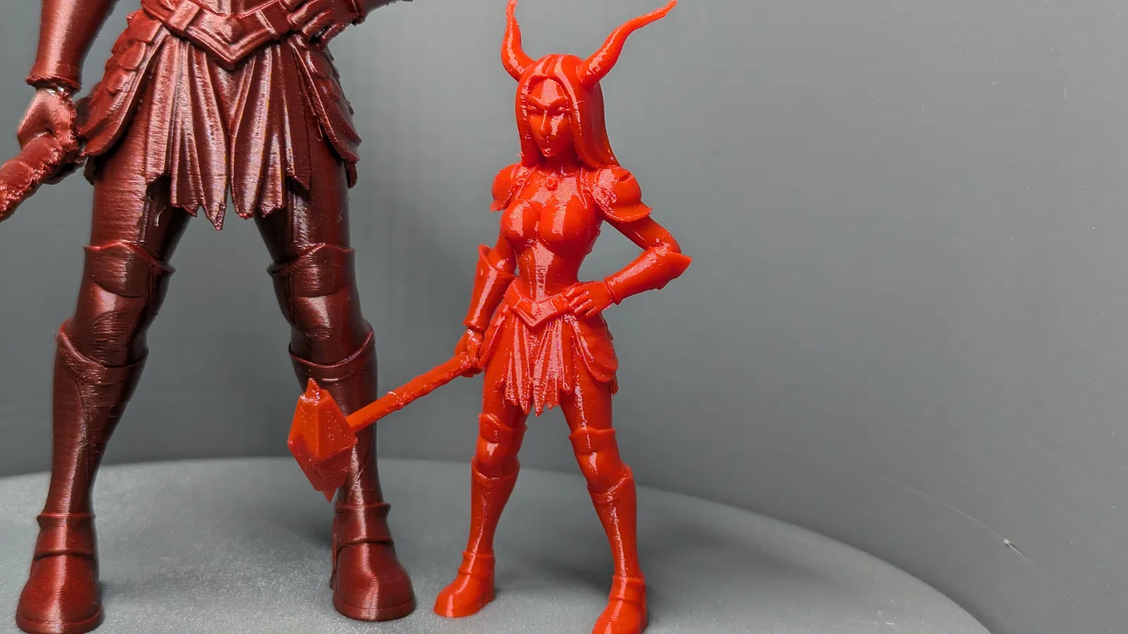 Một nữ quỷ cầm búa tạ (maul); hai hình cuối là ảnh nguồn và bản render từ PrintU.