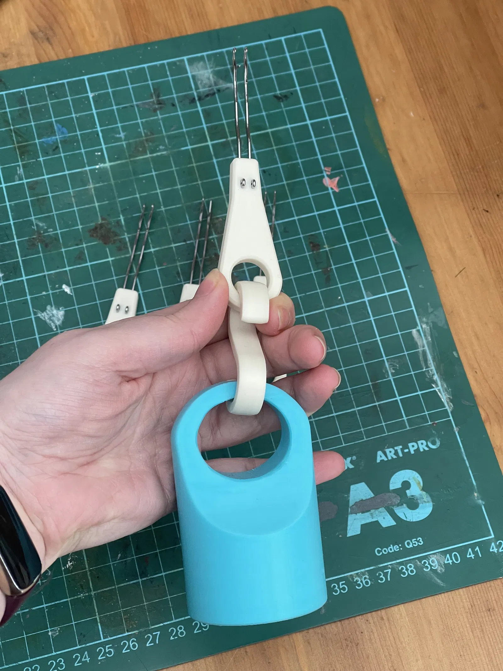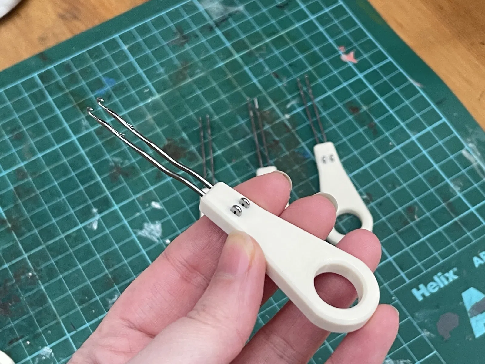Pandel có một ý tưởng hay là dùng mấy cây kim dự phòng của bộ “CSM for Mom and You” để làm một dụng cụ kiểu latch hook, còn mình thì đang cần heel forks.. thế là mấy cái này ra đời!